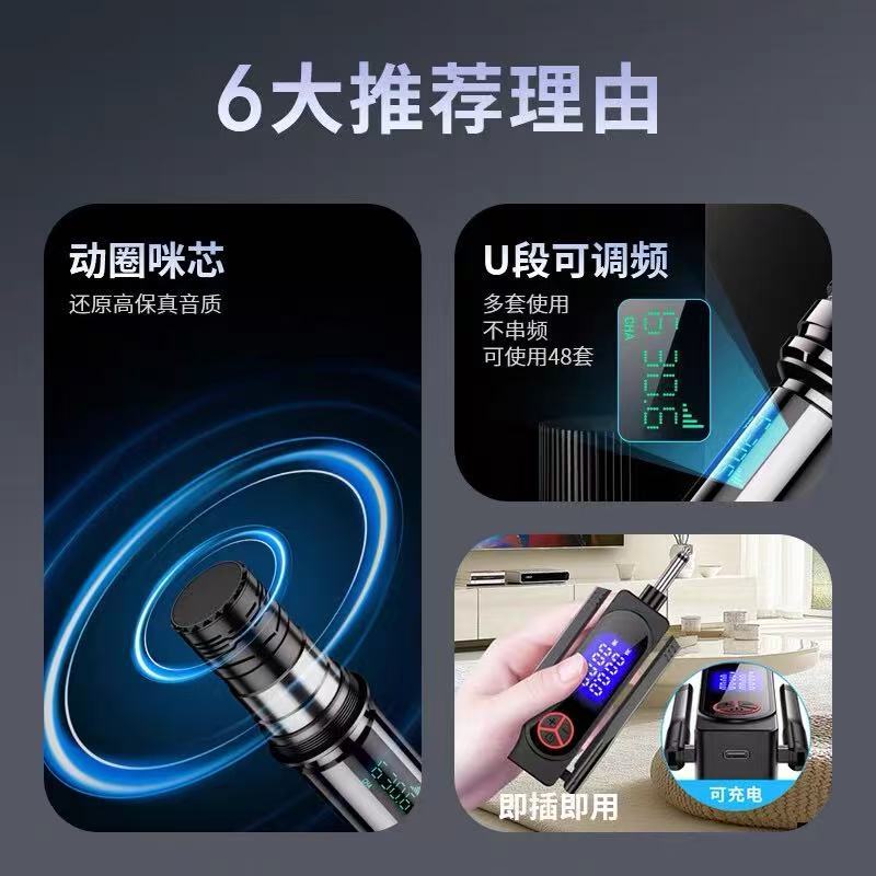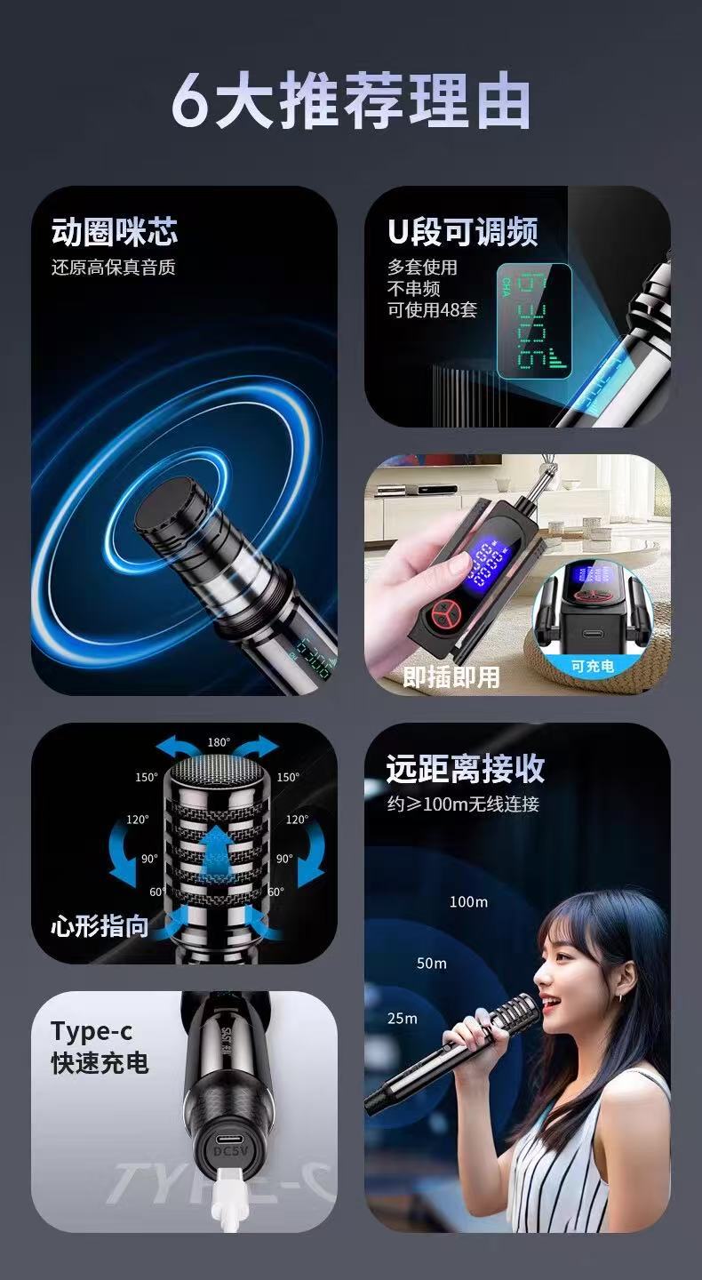 ワイヤレスマイク家庭用k歌金属U段一拉二音響生放送サウンドカード録音高音質充電マイク