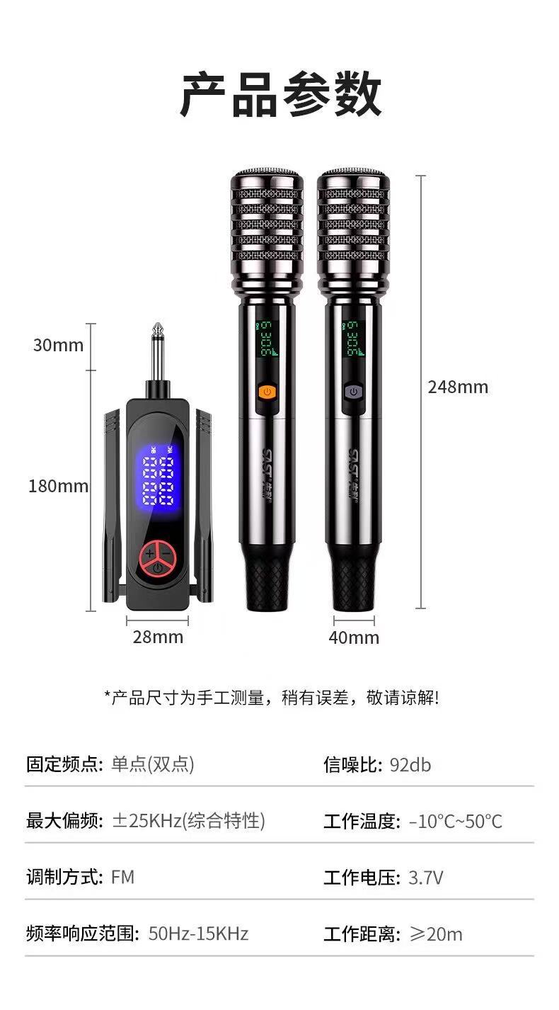 山-水K50无线唱歌手持话筒充电一拖二家用户外直播舞台麦克风演出