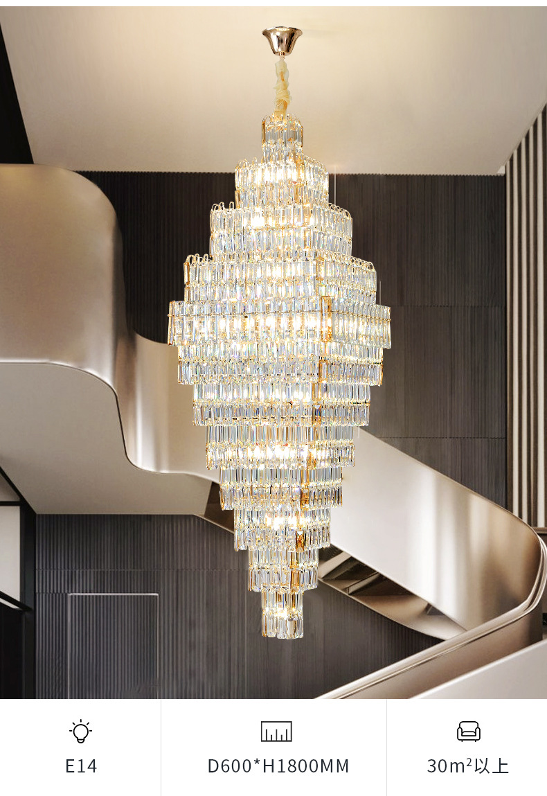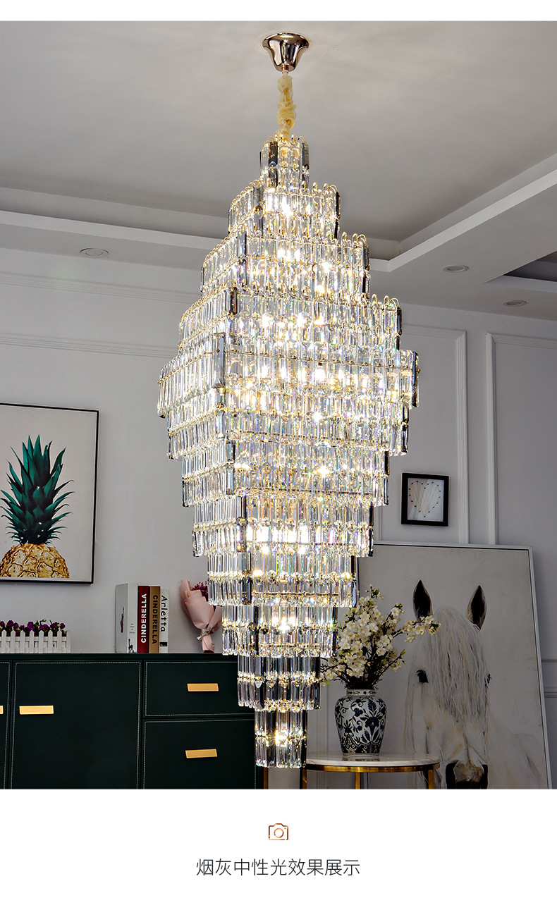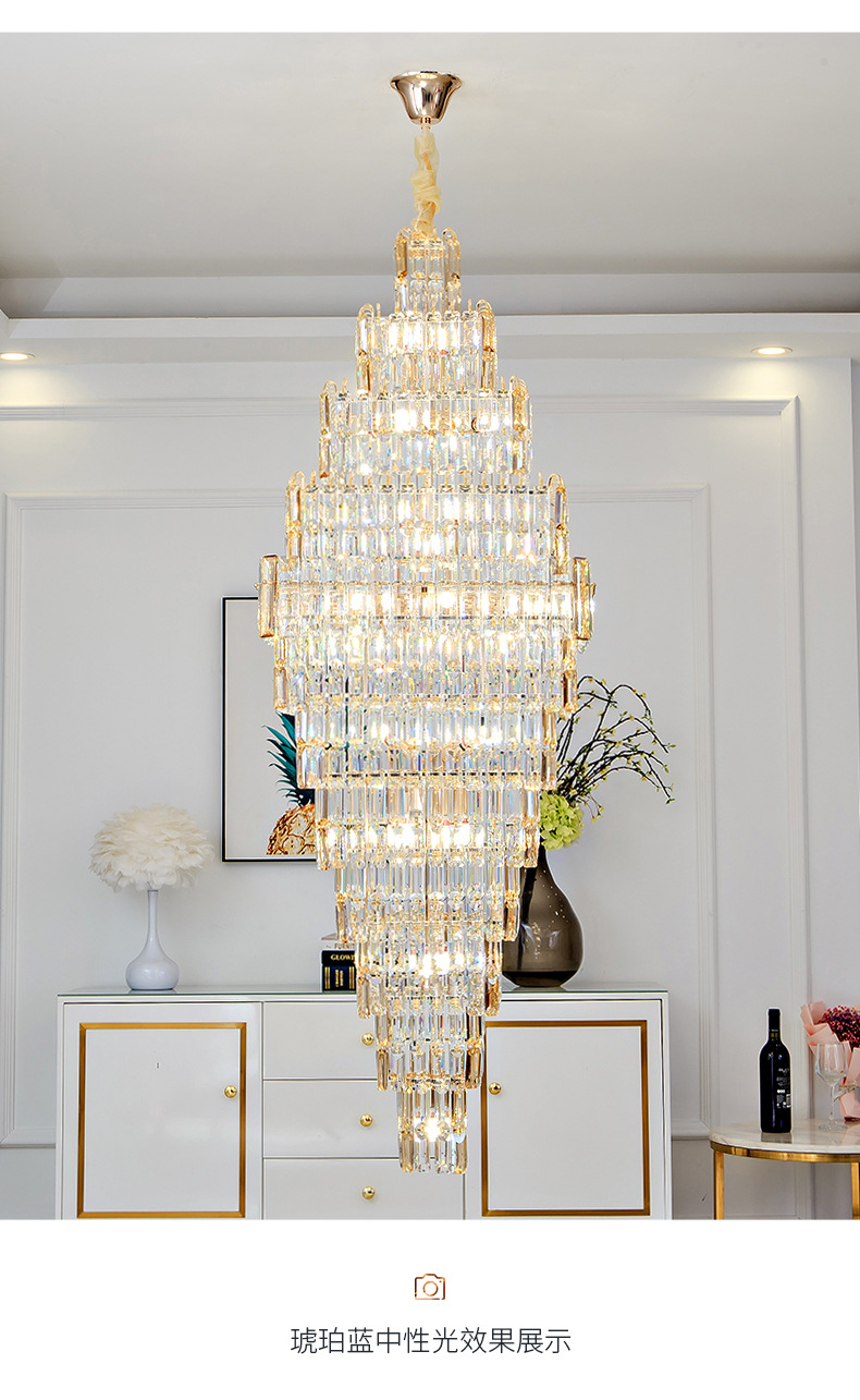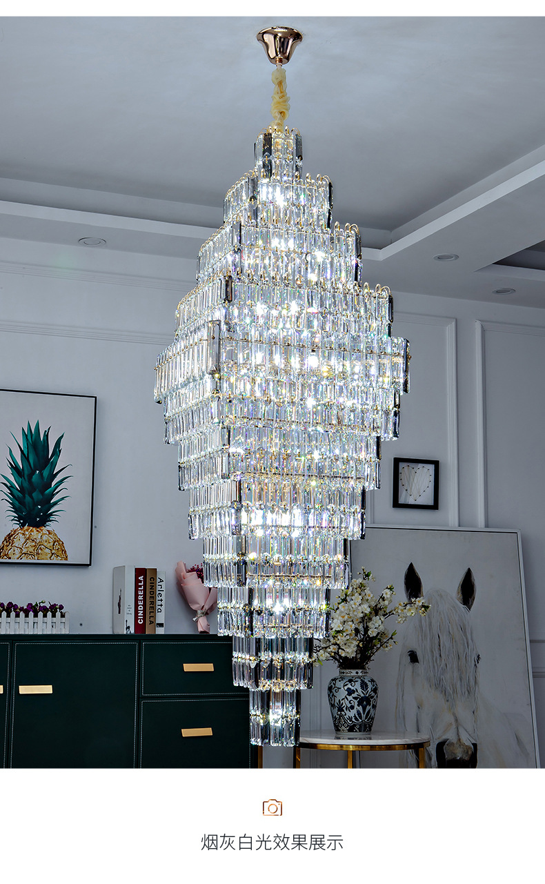 複層ビル大型シャンデリア 2025 新しいヴィラリビングルームホールクリスタルランプ中空ローフ階段ロングシャンデリア