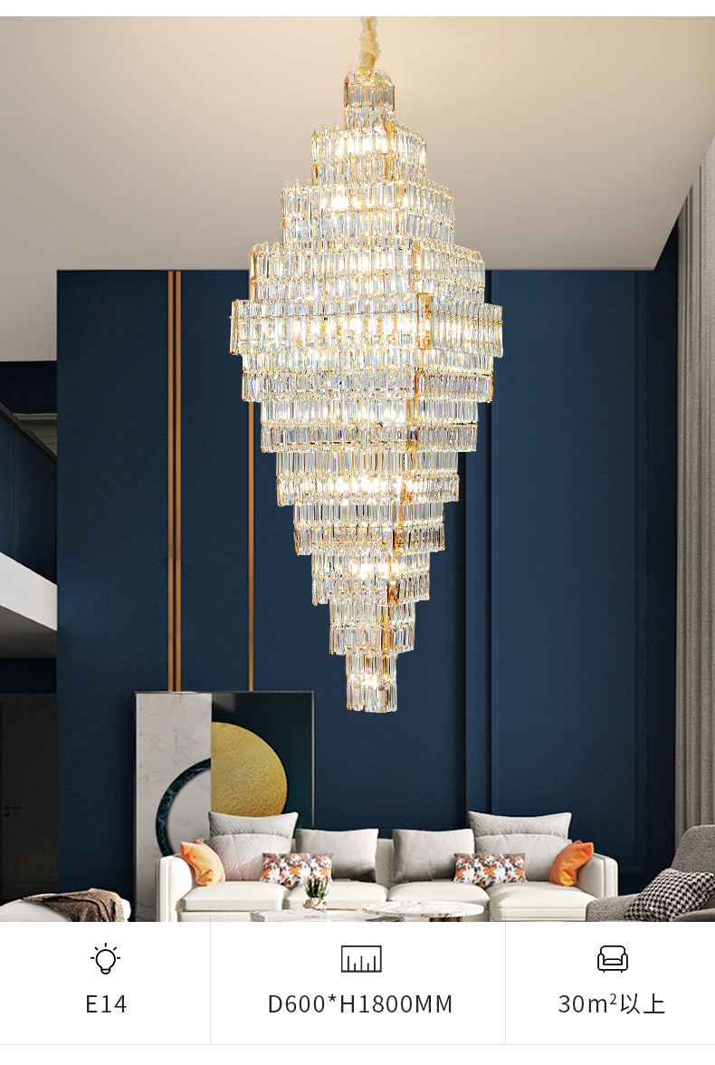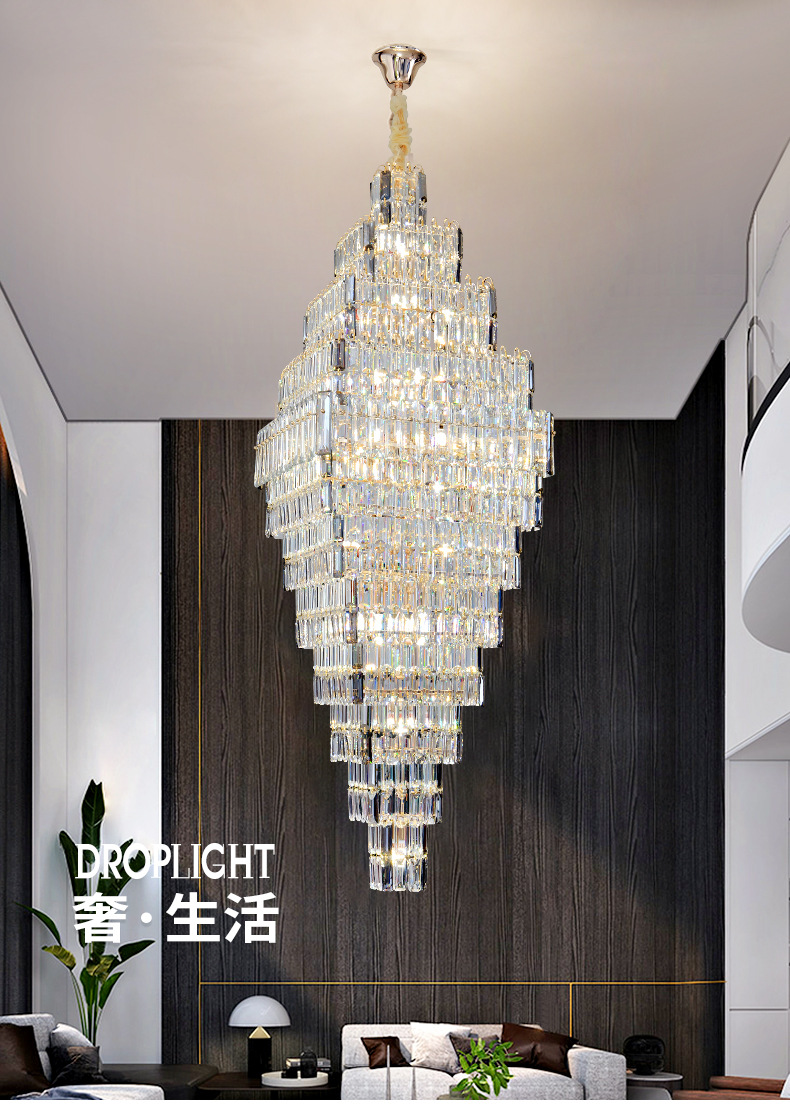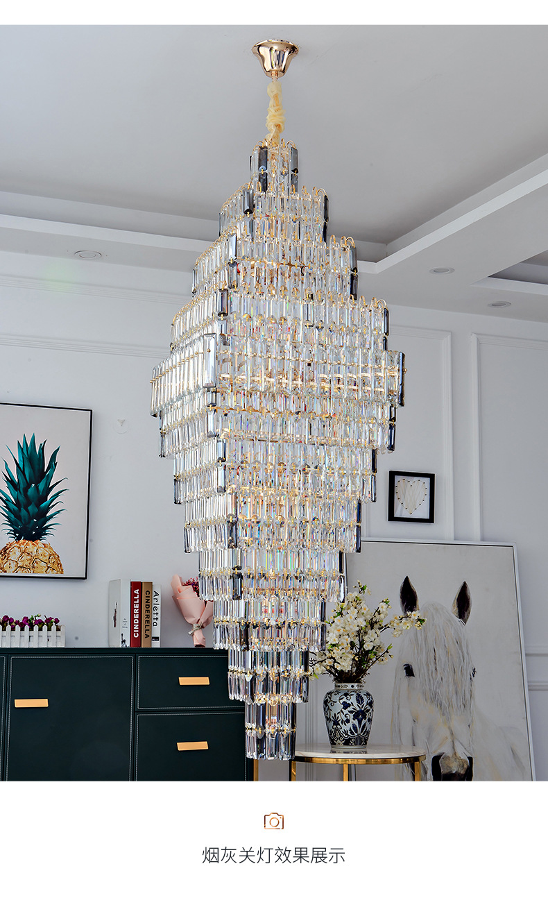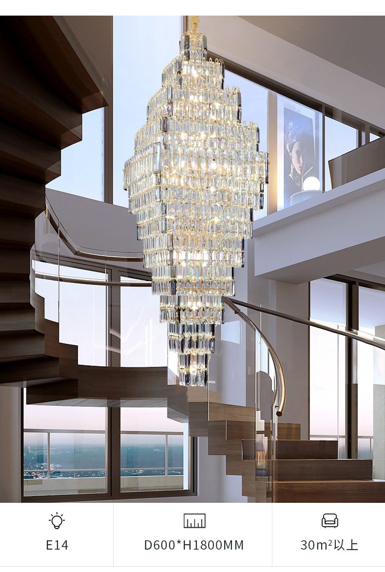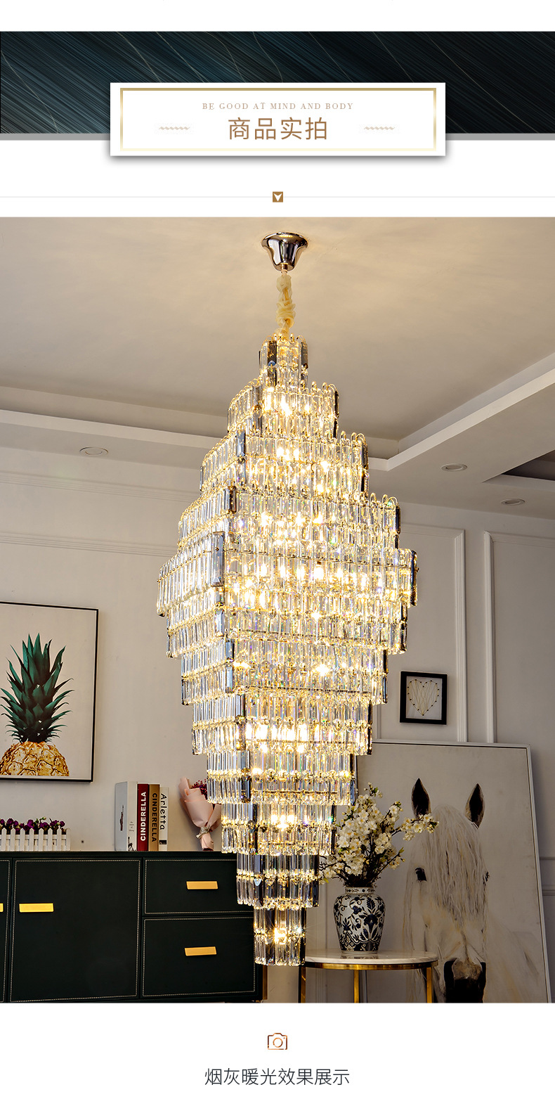 複層ビル大型シャンデリア 2025 新しいヴィラリビングルームホールクリスタルランプ中空ローフ階段ロングシャンデリア