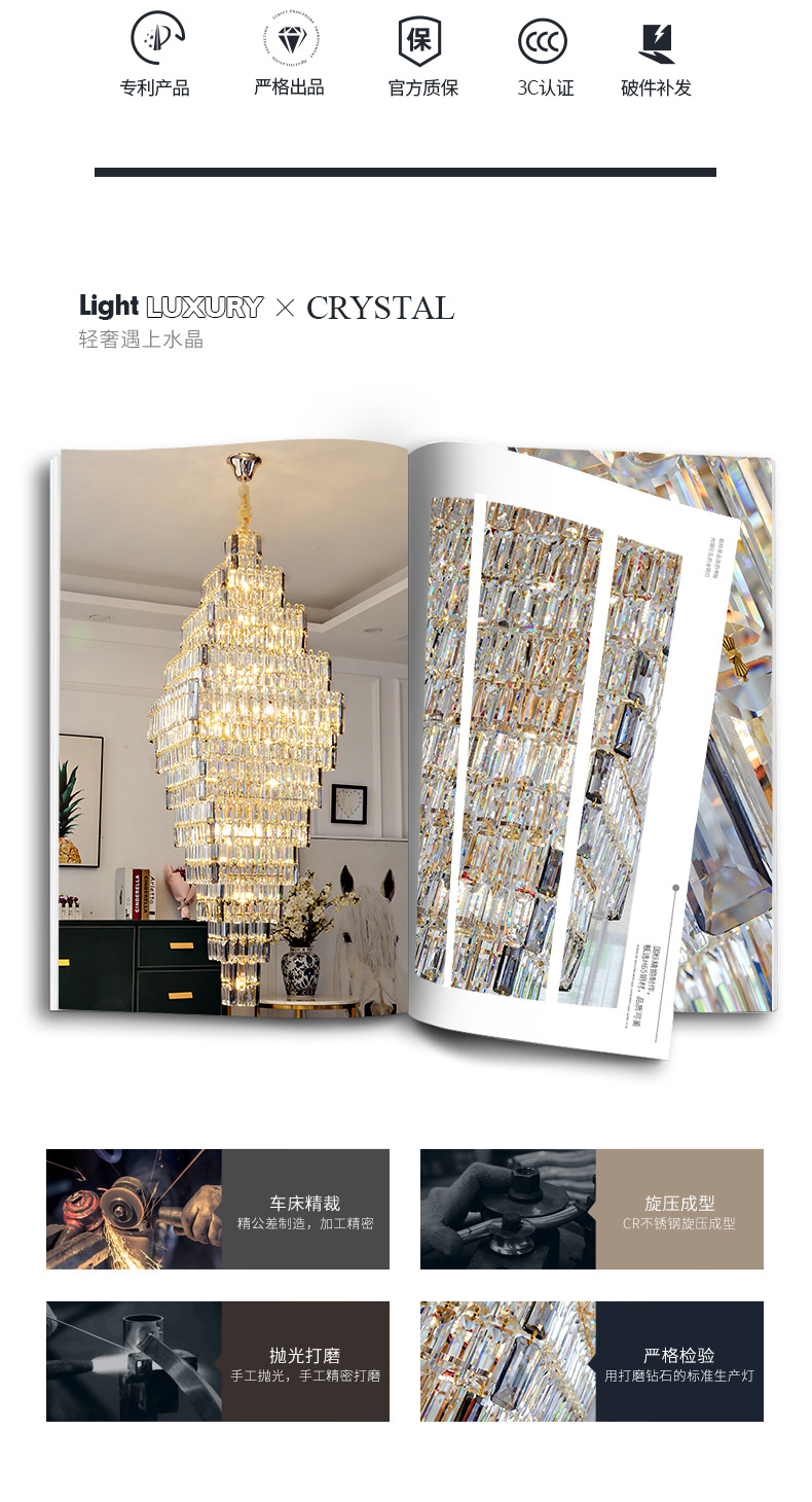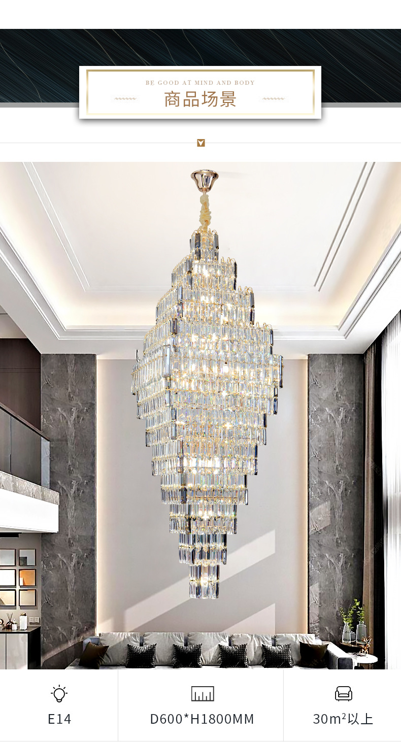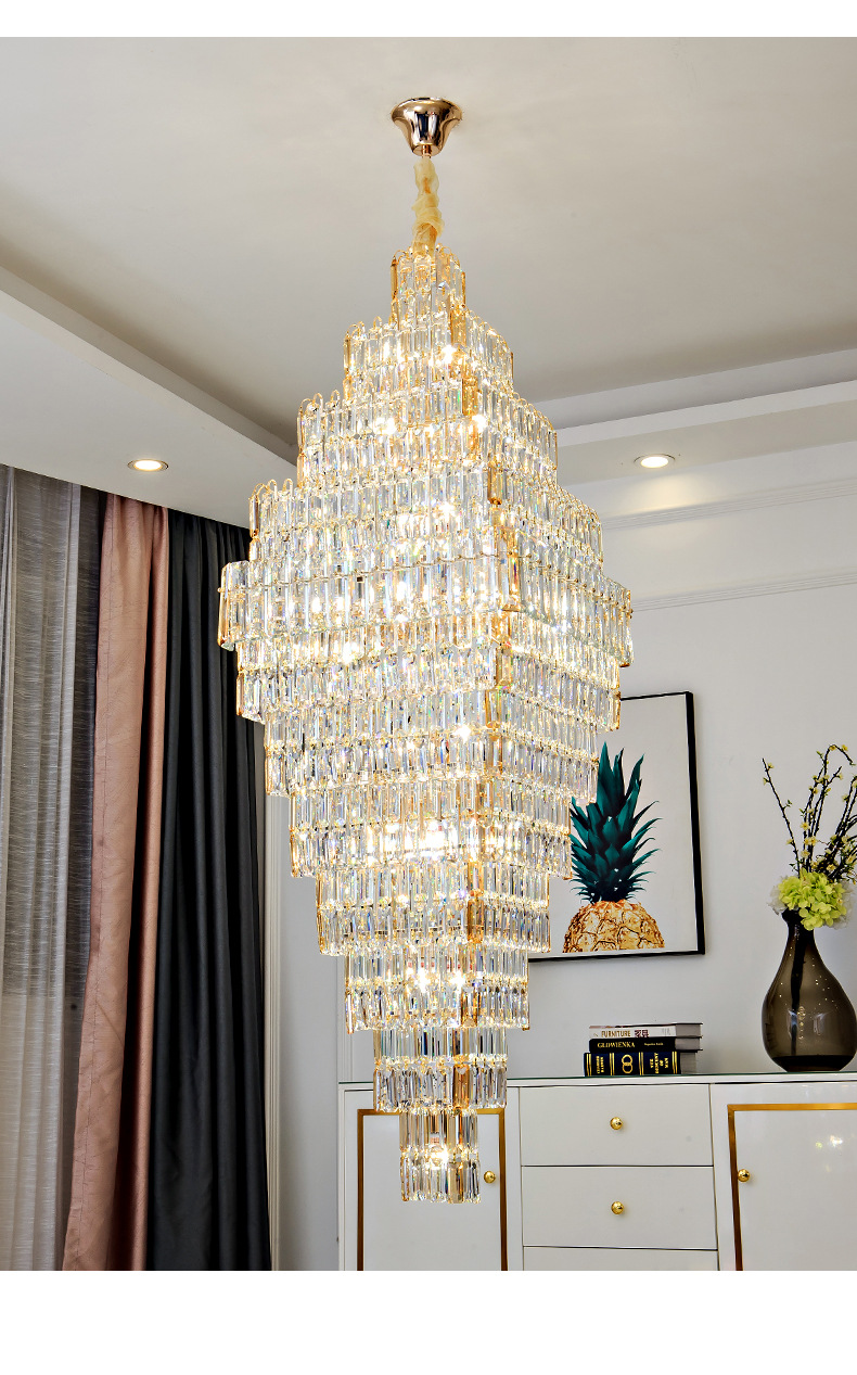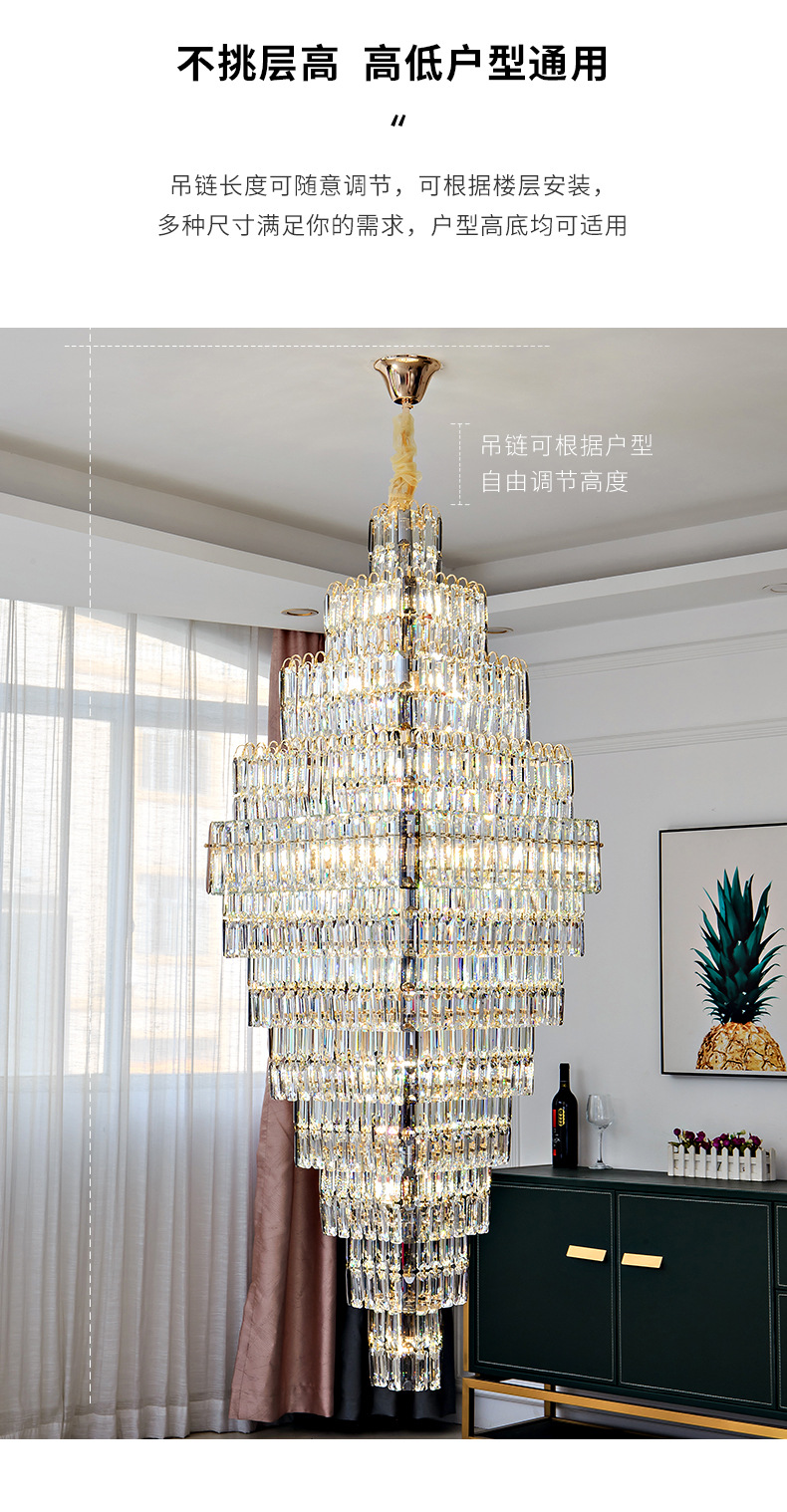 複層ビル大型シャンデリア 2025 新しいヴィラリビングルームホールクリスタルランプ中空ローフ階段ロングシャンデリア