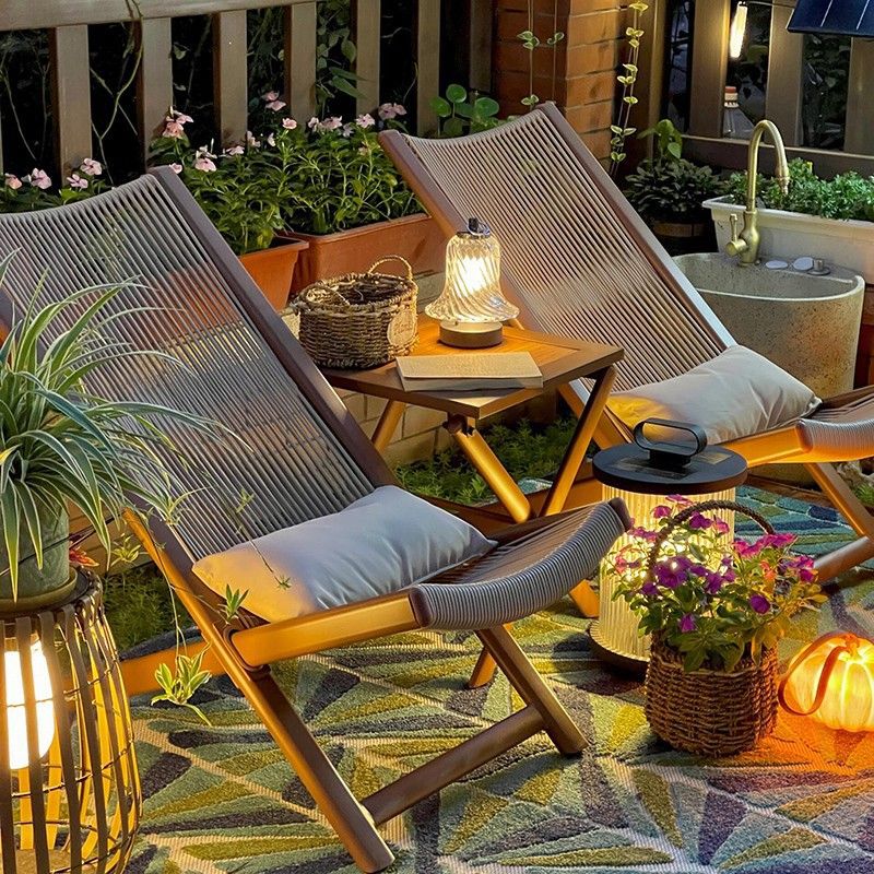 国境を越えたバルコニーシート、屋外テーブルと椅子の組み合わせ、中庭、庭園、テラス、リラックスチェア、民宿、新中式リクライニングチェア