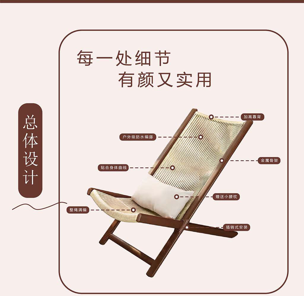 躺椅户外阳台庭院休闲椅子编织靠背藤椅懒人椅网红民宿可折叠桌椅