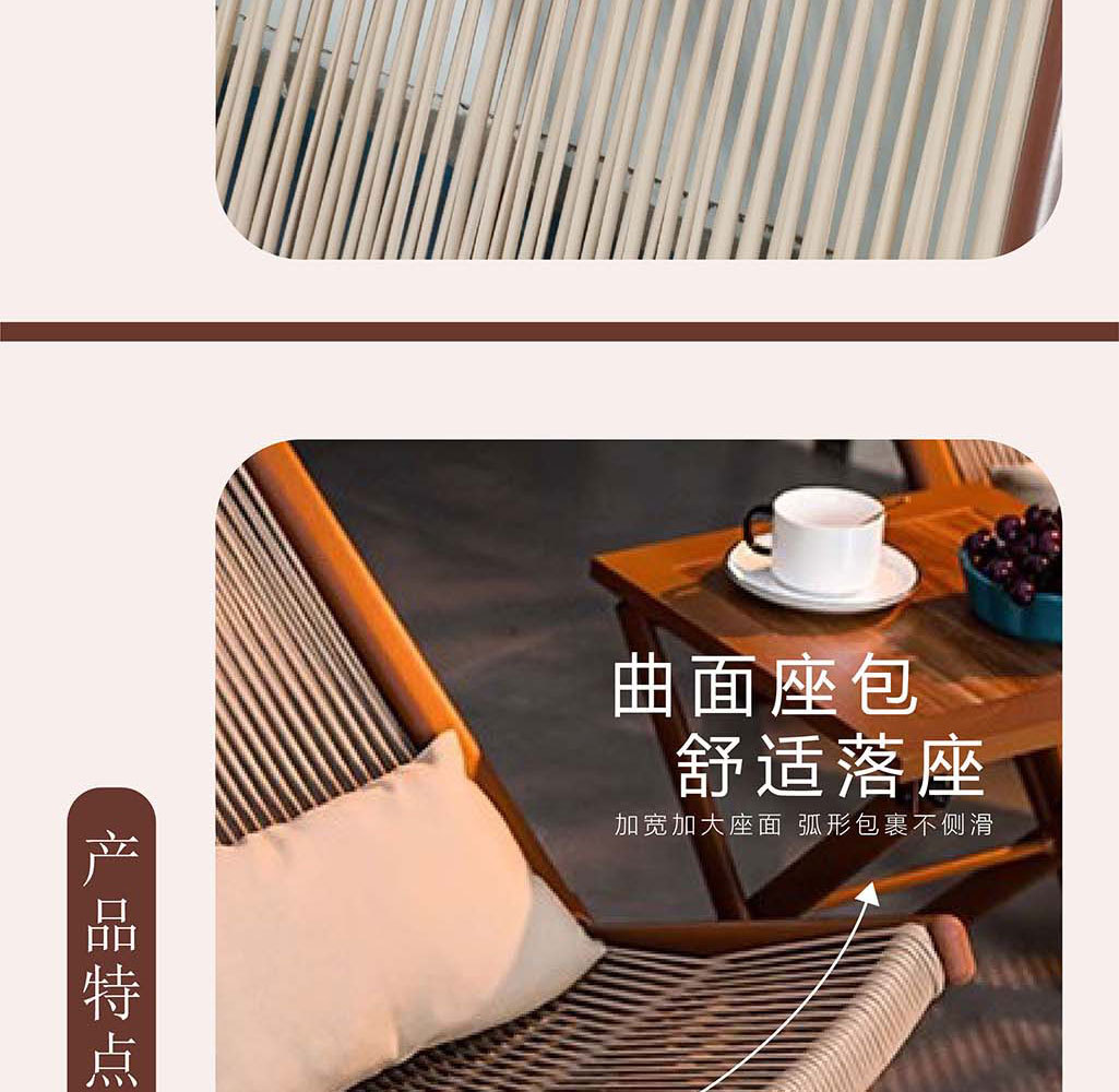 阳台户外桌椅组合庭院花园露台折叠休闲椅子防水新中式躺椅藤椅..