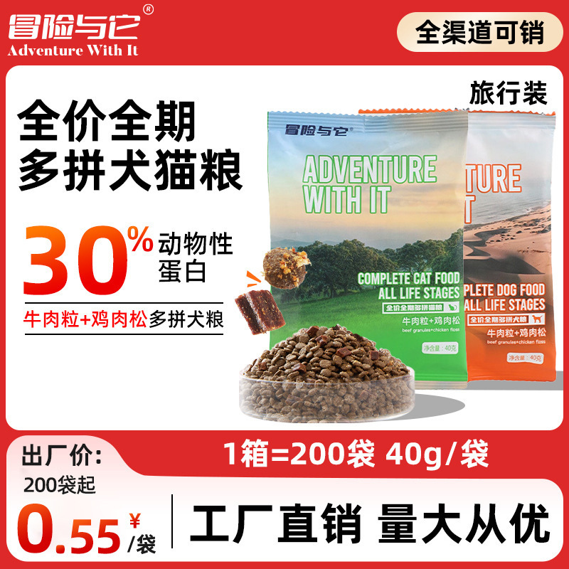 【お試し】アドベンチャー&モア ドッグフード キャットフード ビーフペレット ミートフロス 犬猫の主食 携帯用トラベルパック