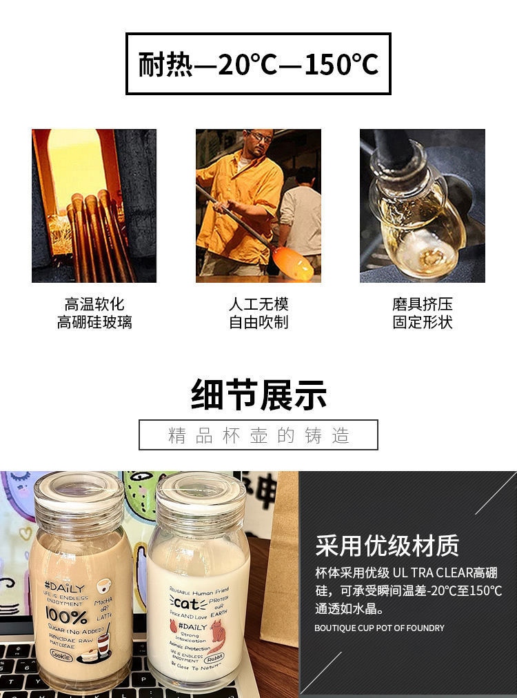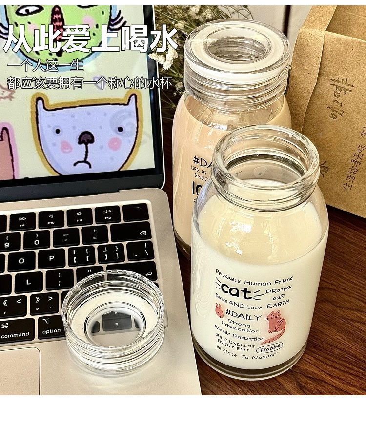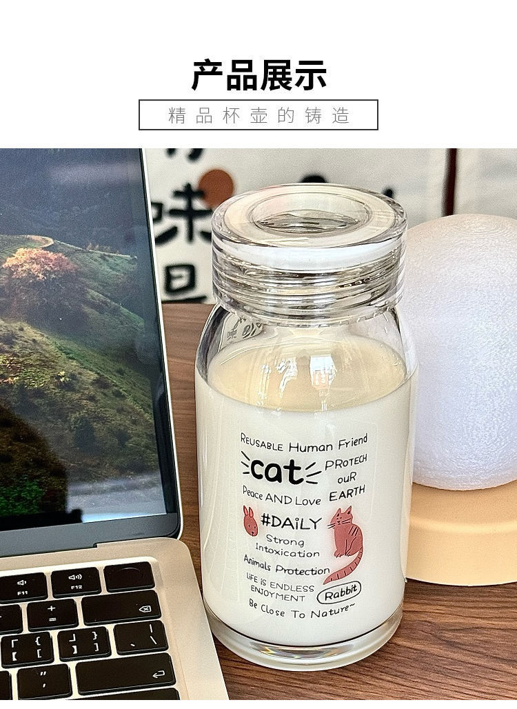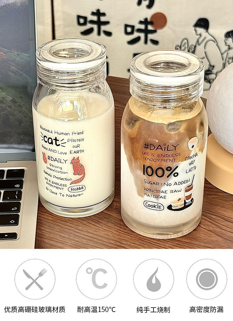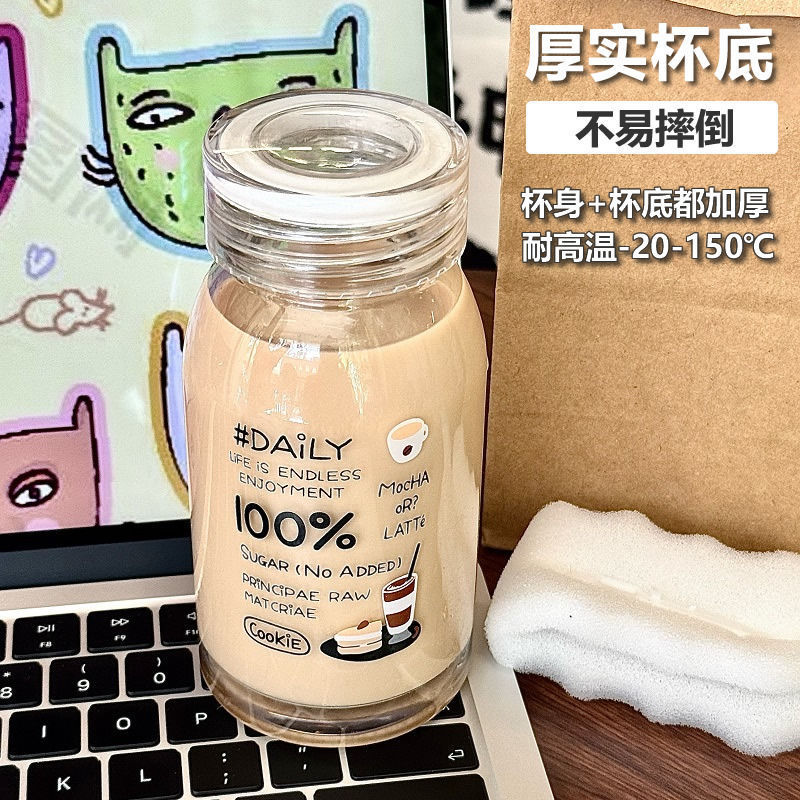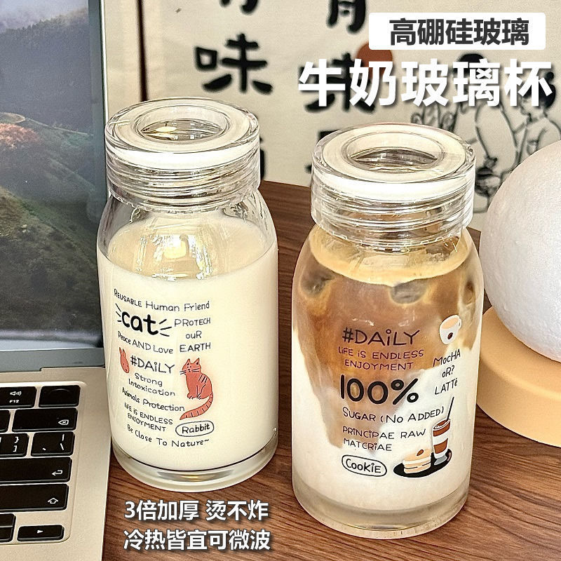 蓋付きコーヒーミルクカップ、ガラスカップ、豆乳カップ、寮ポータブルカップ、学生高温耐性電子レンジウォーターカップ
