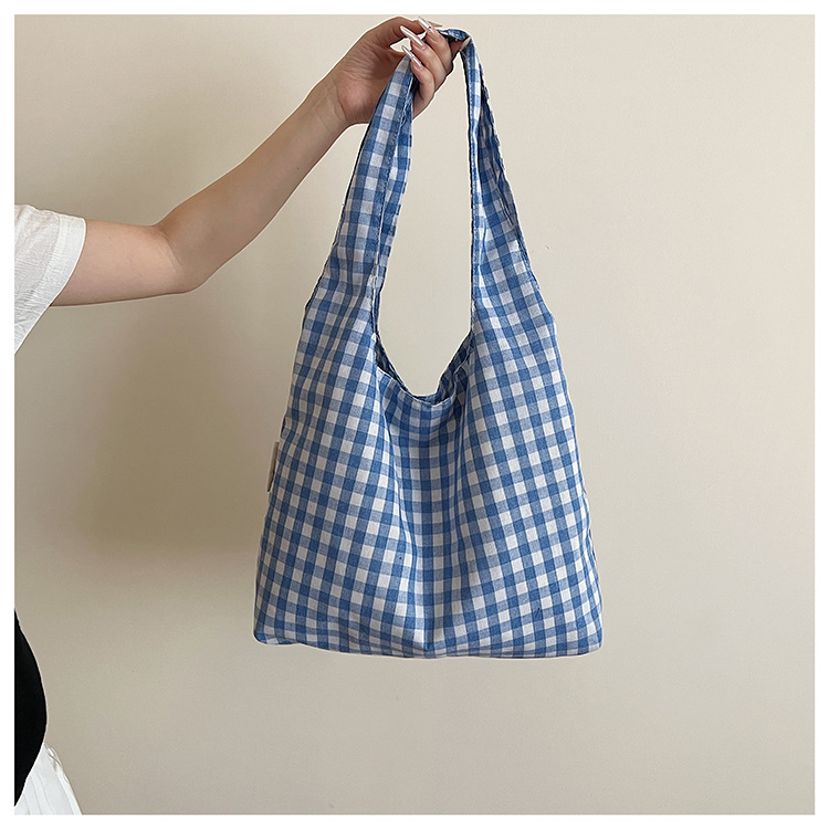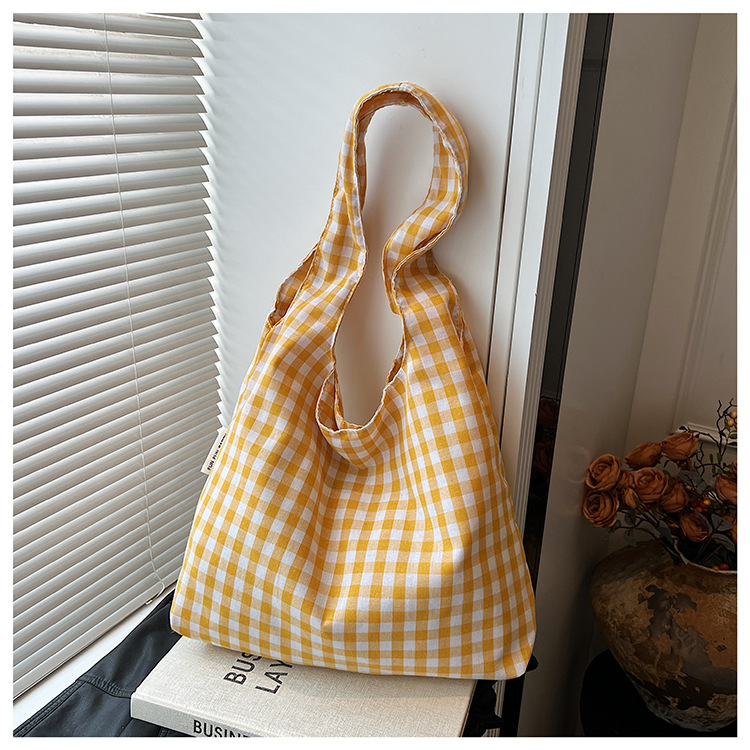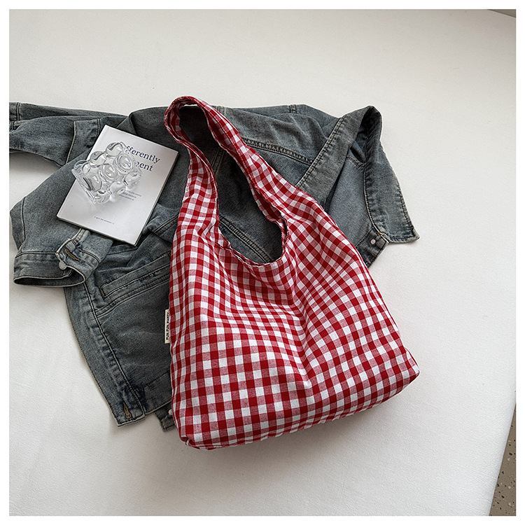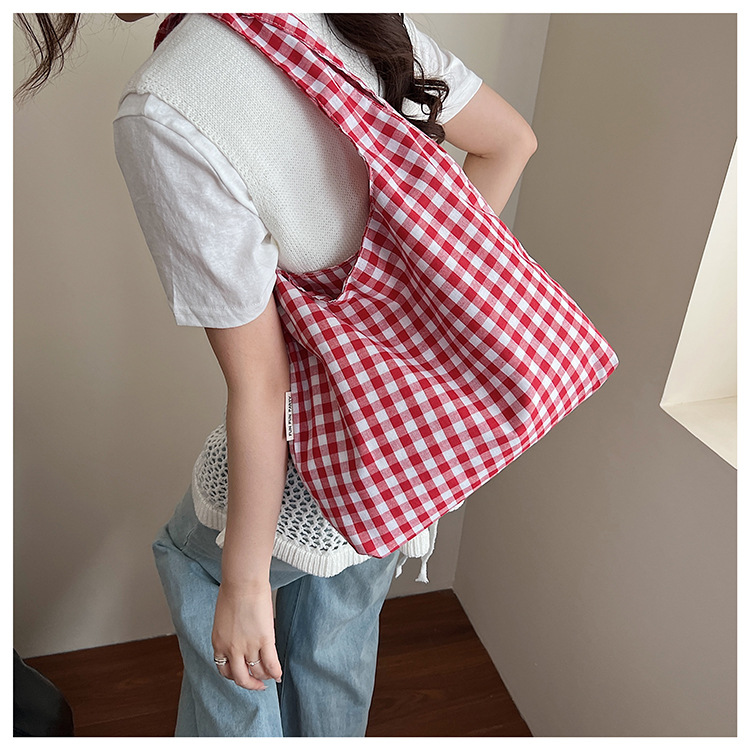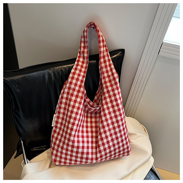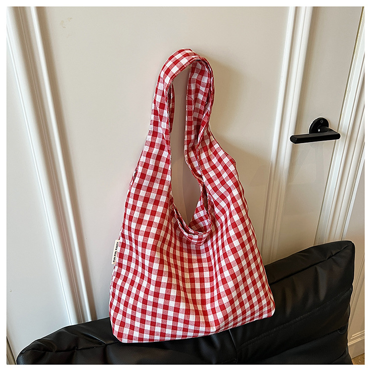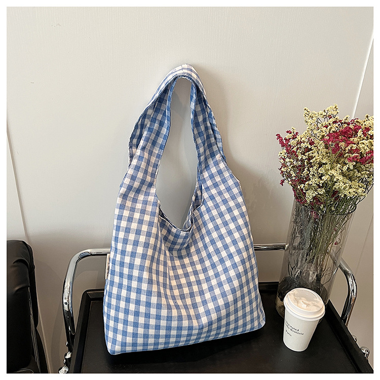 小さな新鮮なチェック柄ショルダーバッグ夏韓国ニッチカジュアル怠惰なスタイルハンドバッグ通勤大容量キャンバスバッグ