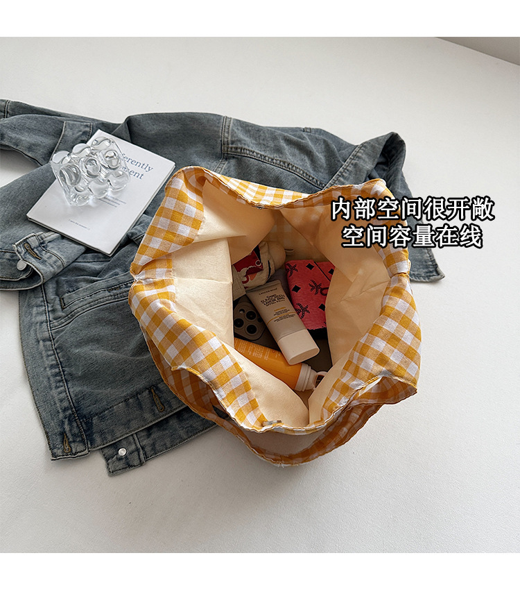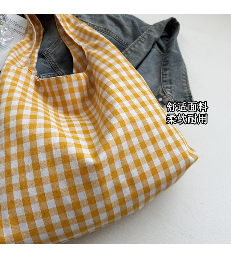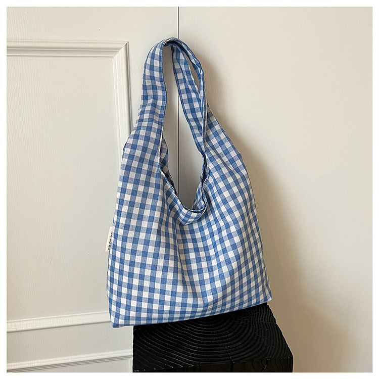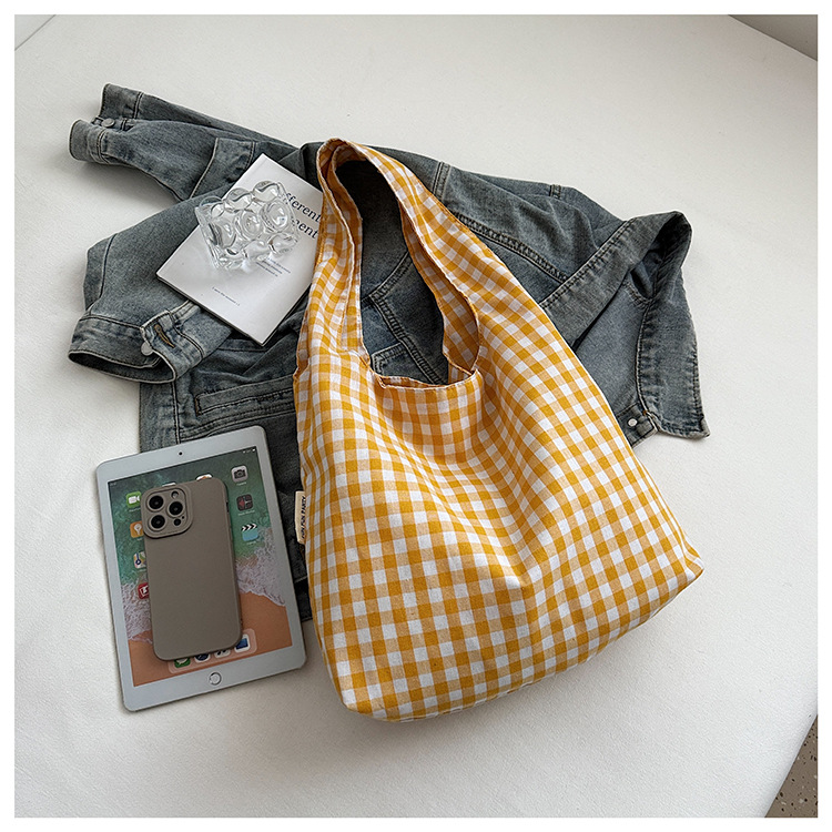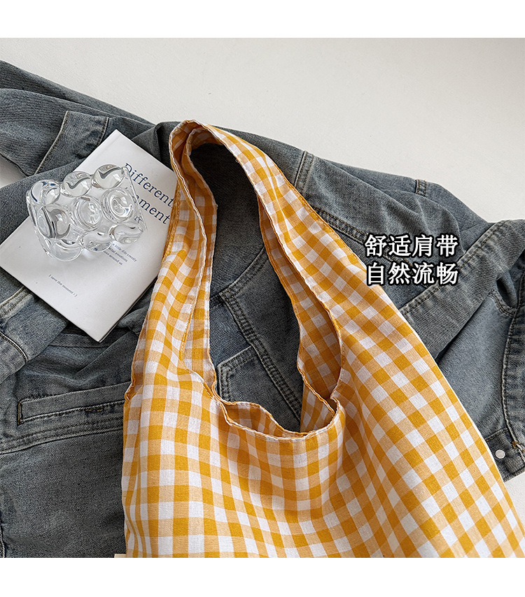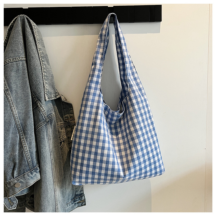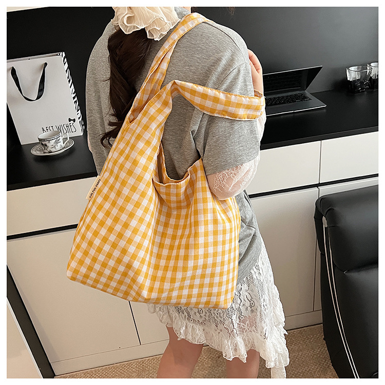 小さな新鮮なチェック柄ショルダーバッグ夏韓国ニッチカジュアル怠惰なスタイルハンドバッグ通勤大容量キャンバスバッグ