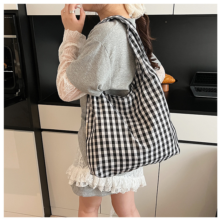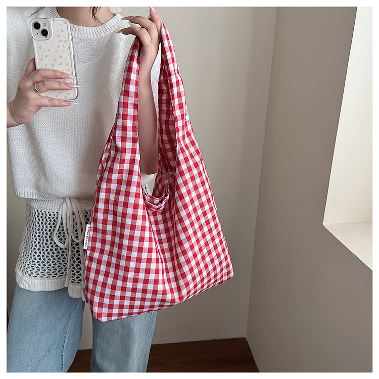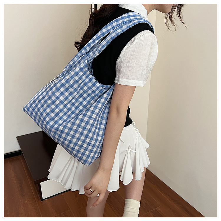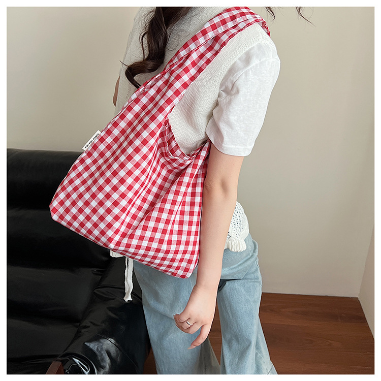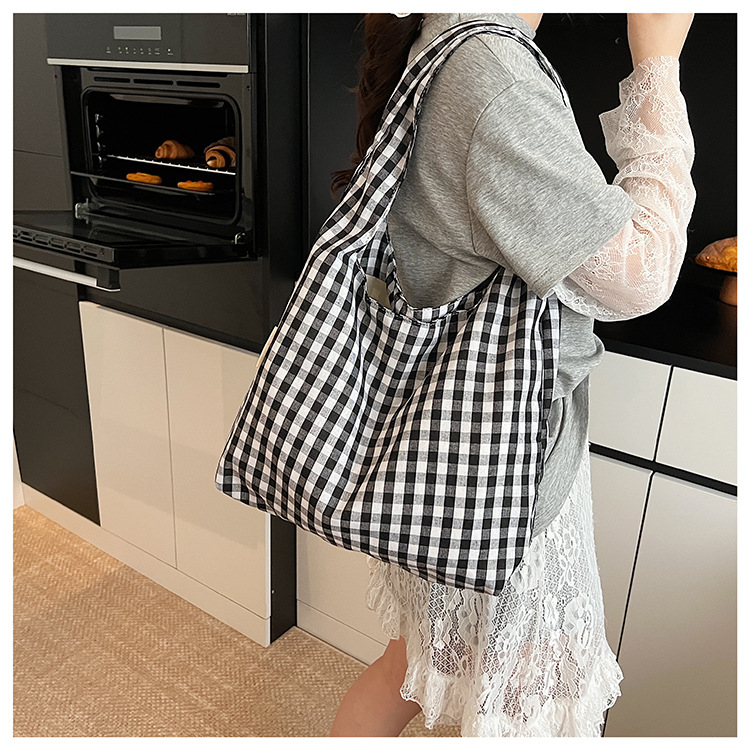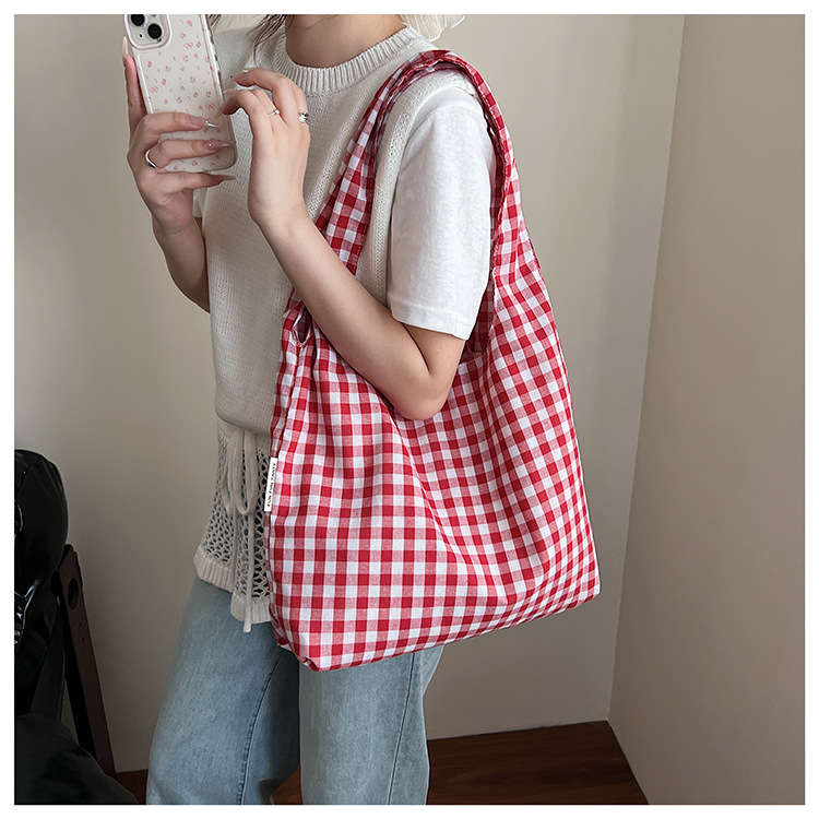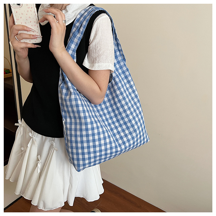 新しい韓国スタイルのレトロなチェック柄カレッジスタイルのベストバッグ大容量ショルダーバッグ軽量ショッピングバッグ多用途ショッピングバッグ