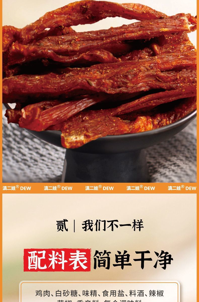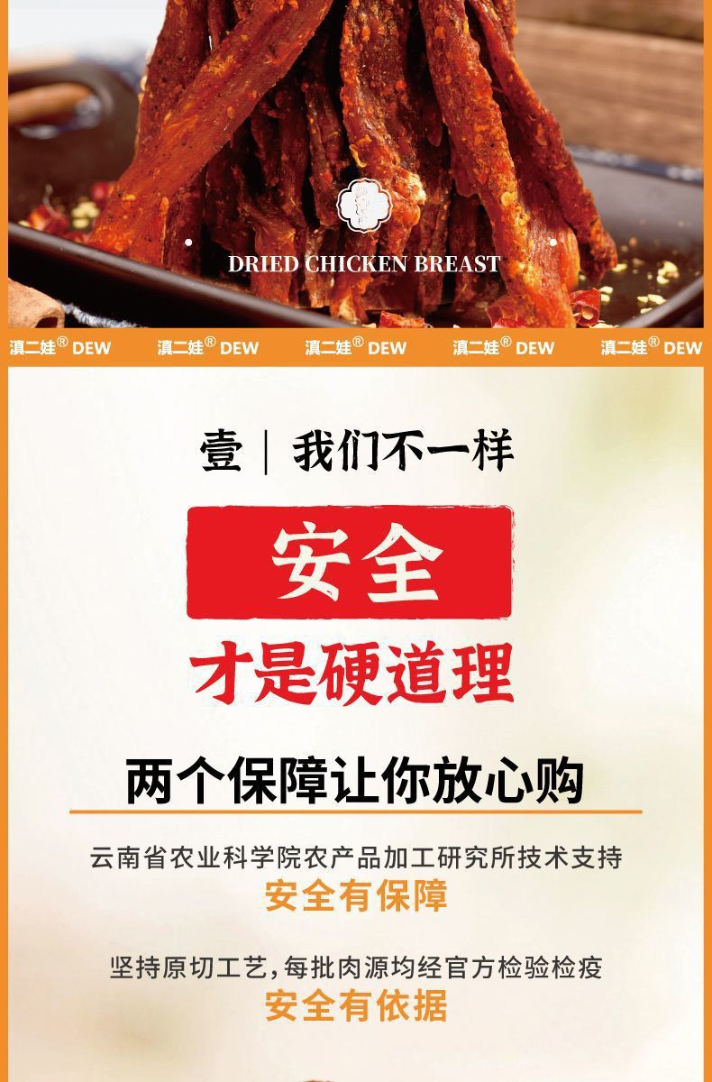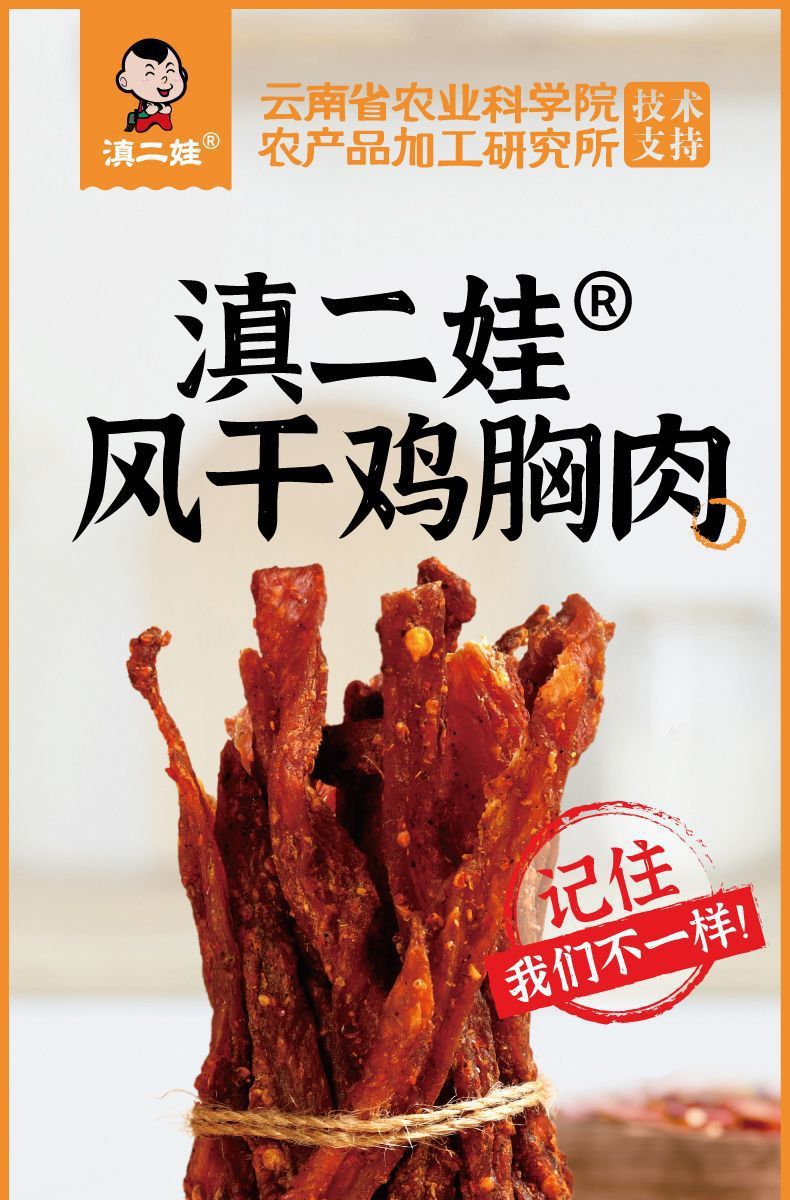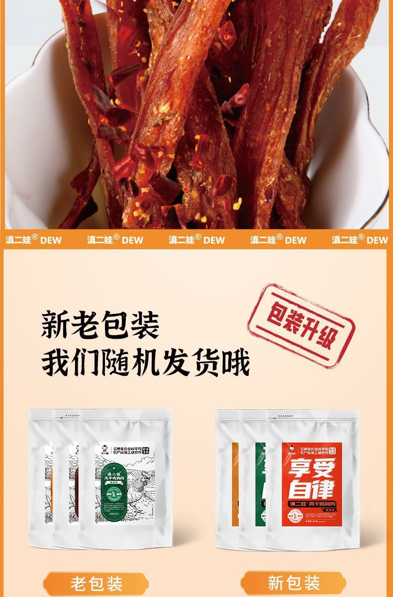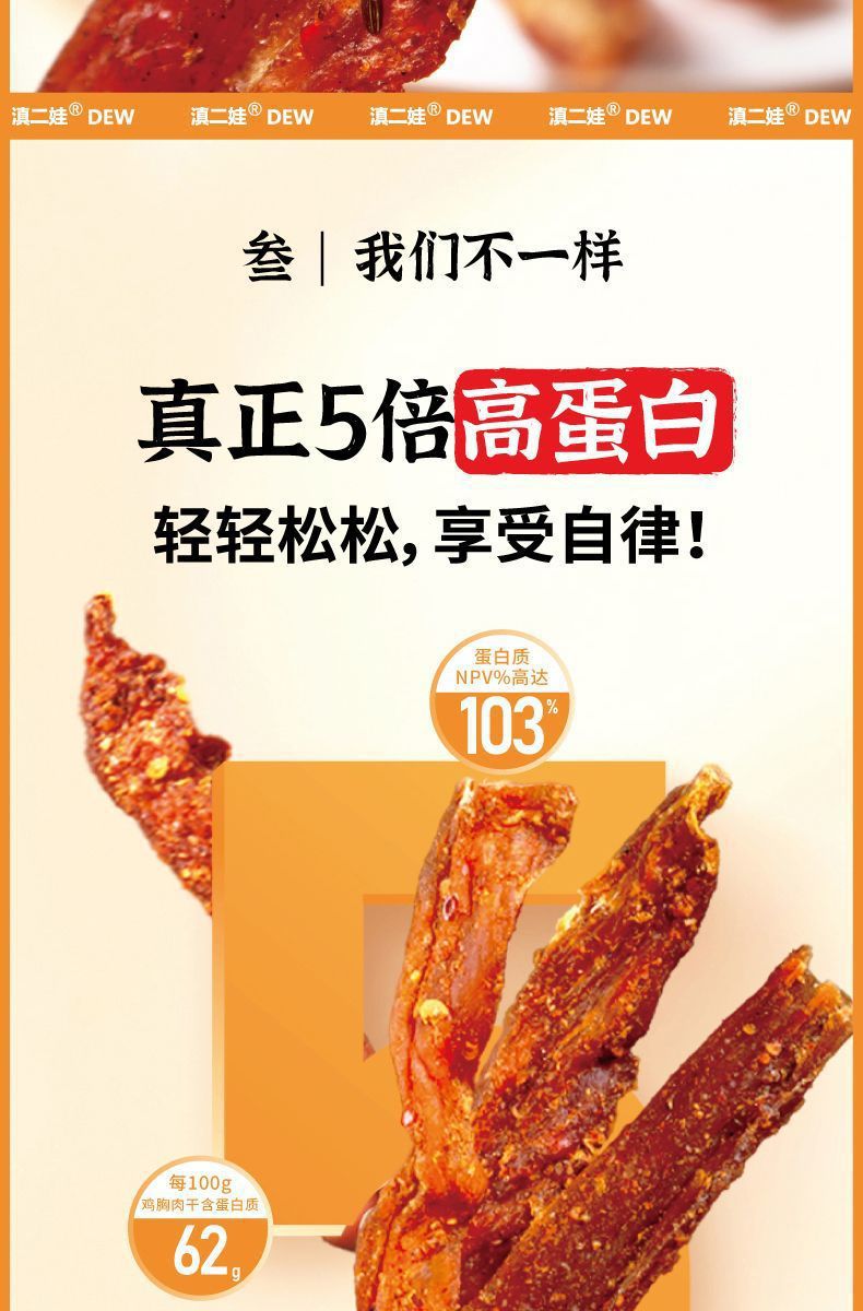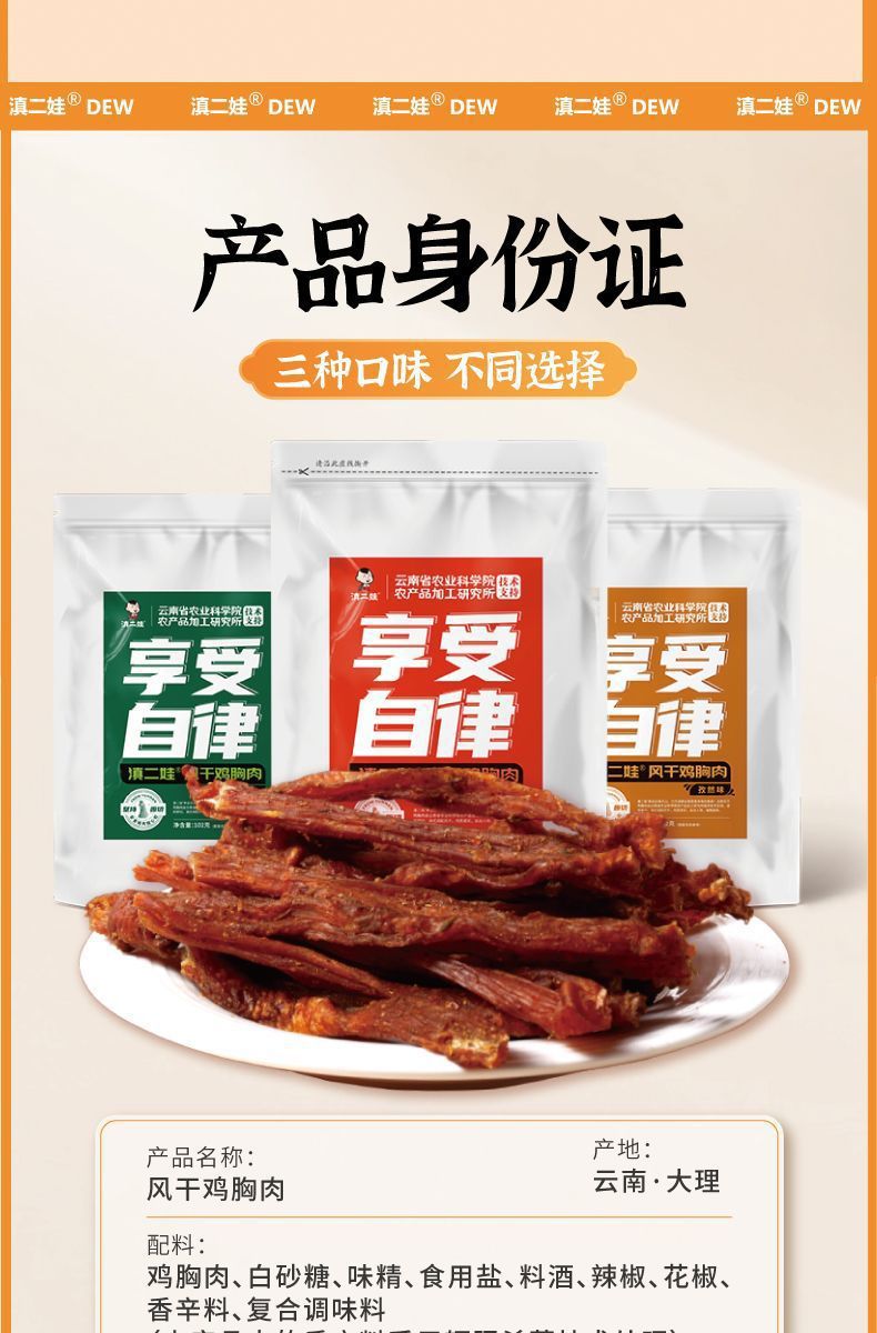 Dian Erwa 農業科学院風乾鶏胸肉ストリップ、カロリーカット、噛みごたえのあるカジュアルスナック 102g 卸売