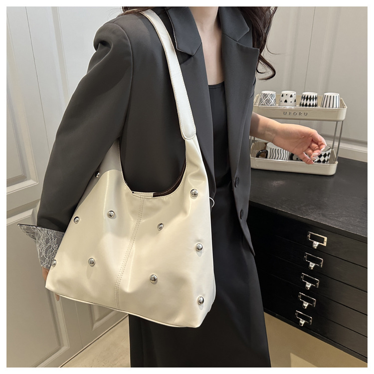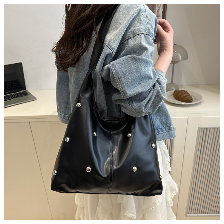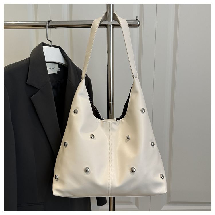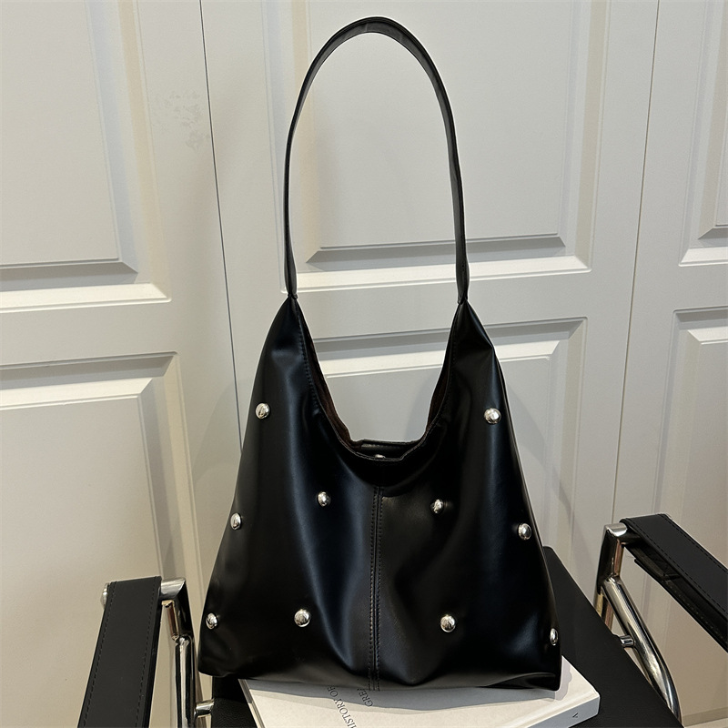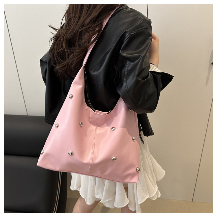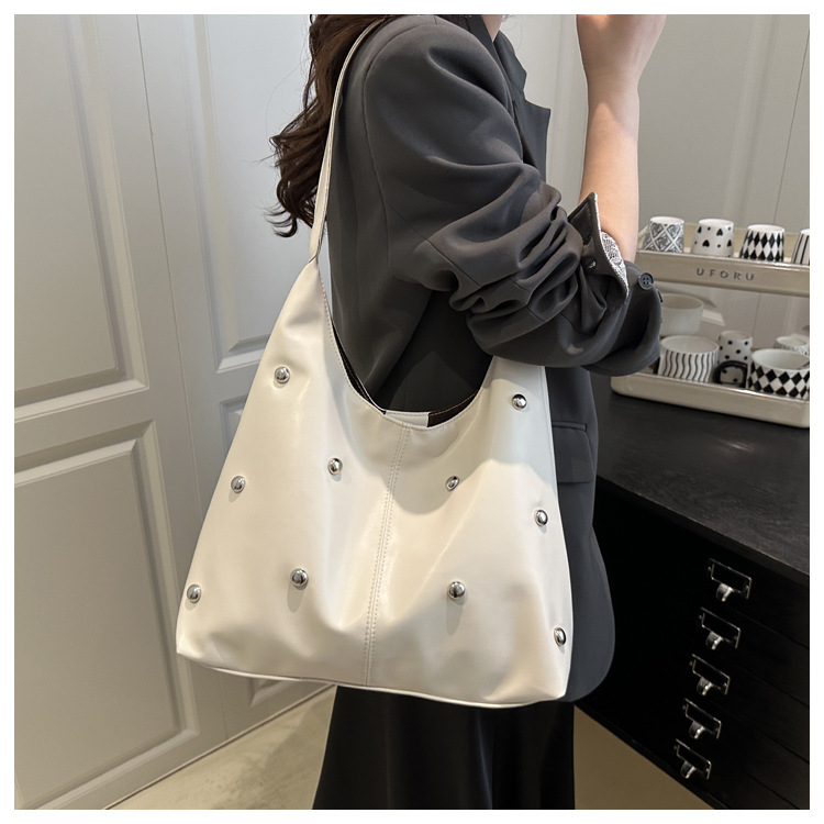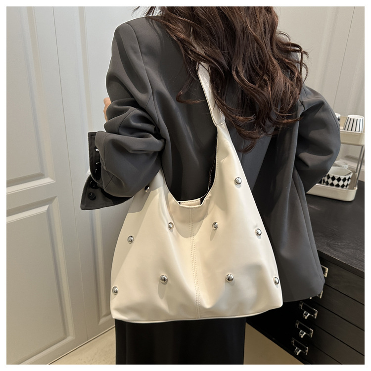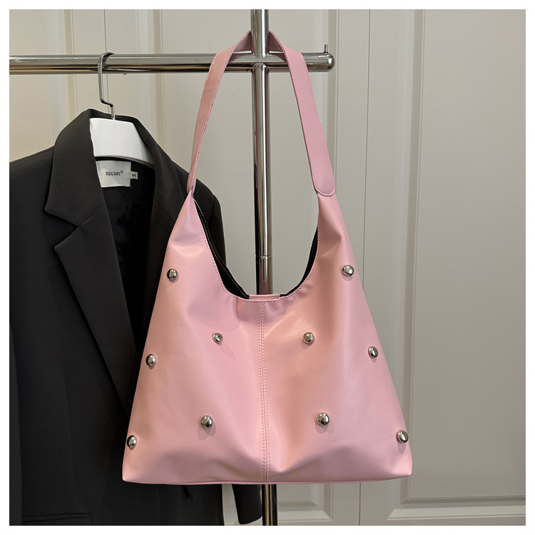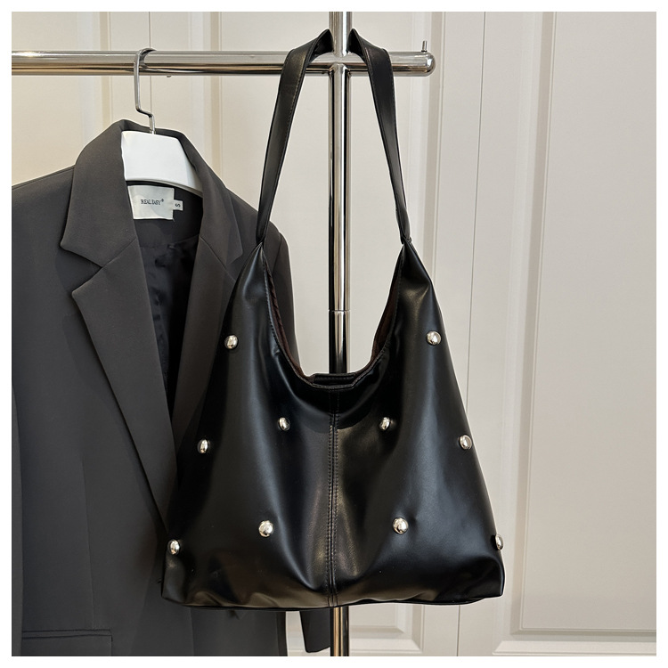 通勤ファッション大容量ポータブルトートバッグ女性のための 2025 夏の新しいトレンディなリベットパーソナライズされたシングルショルダー脇の下バッグ