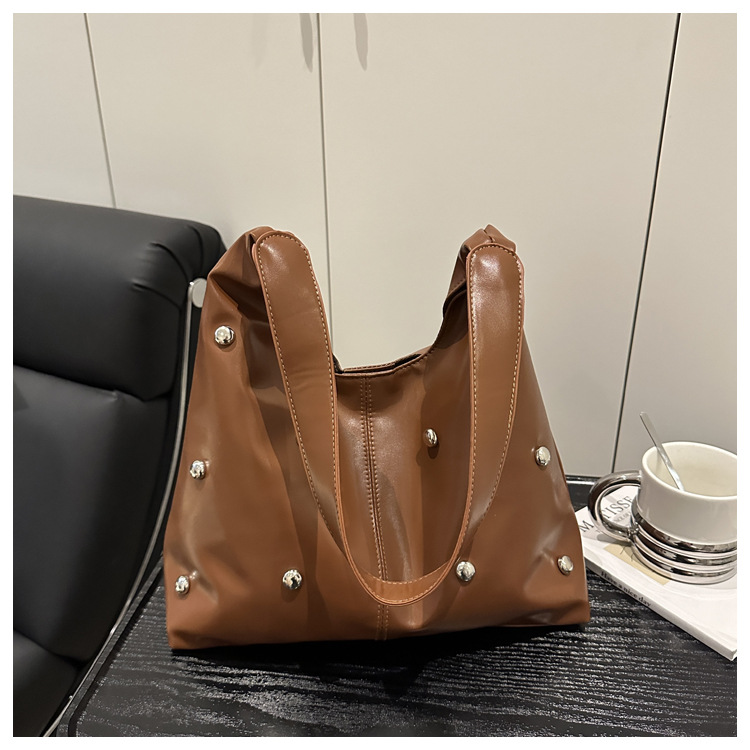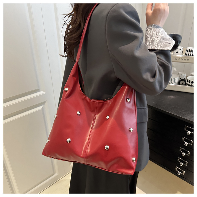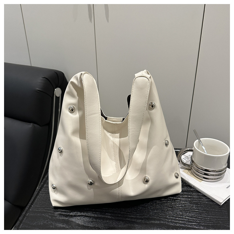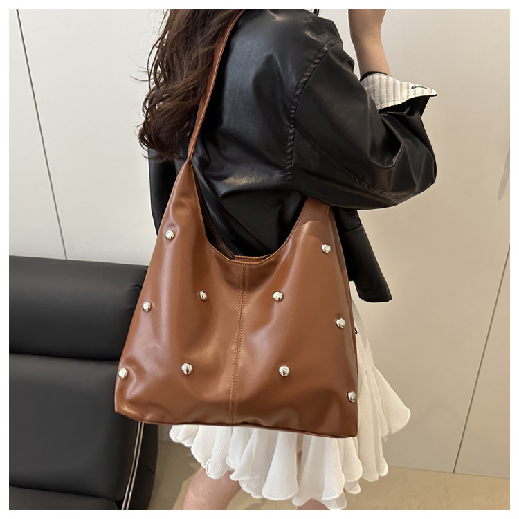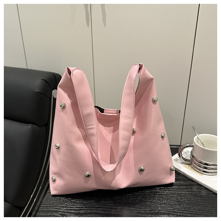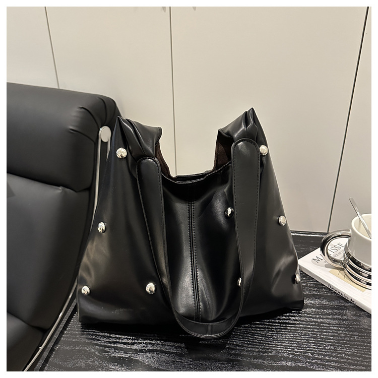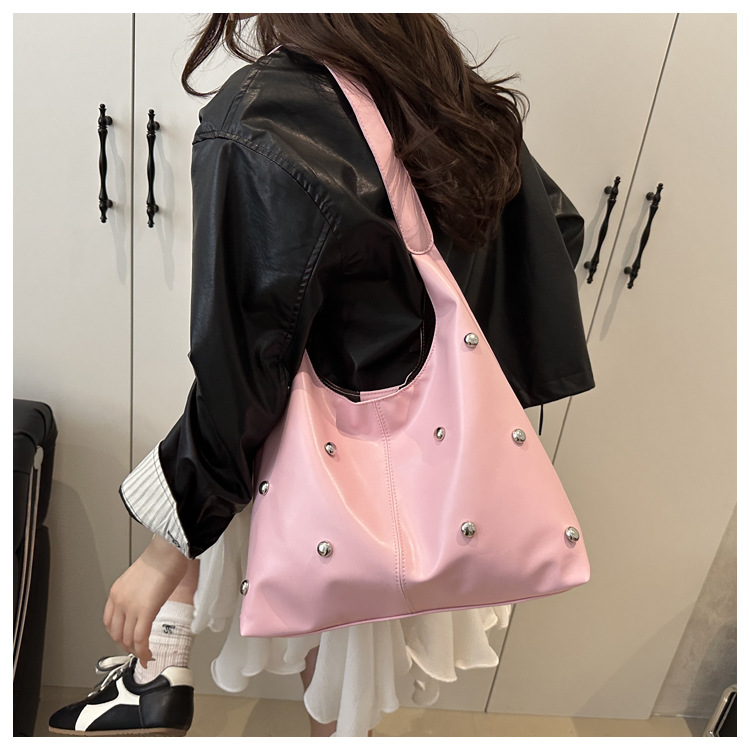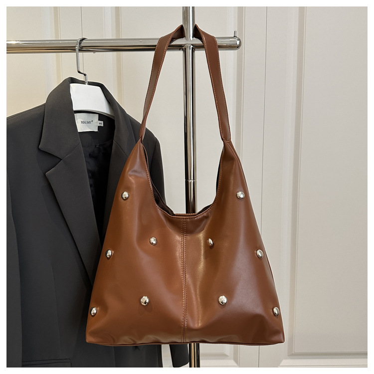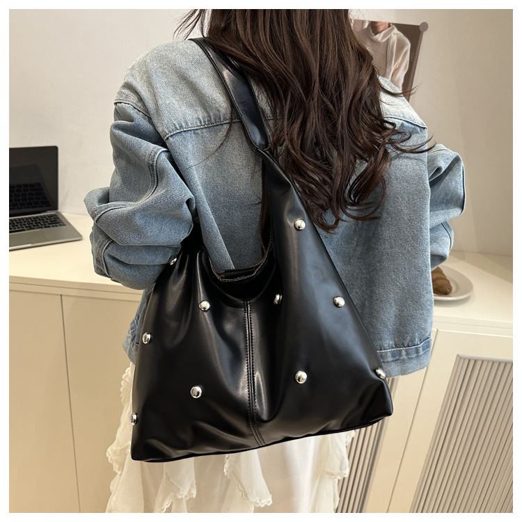 通勤ファッション大容量ポータブルトートバッグ女性のための 2025 夏の新しいトレンディなリベットパーソナライズされたシングルショルダー脇の下バッグ