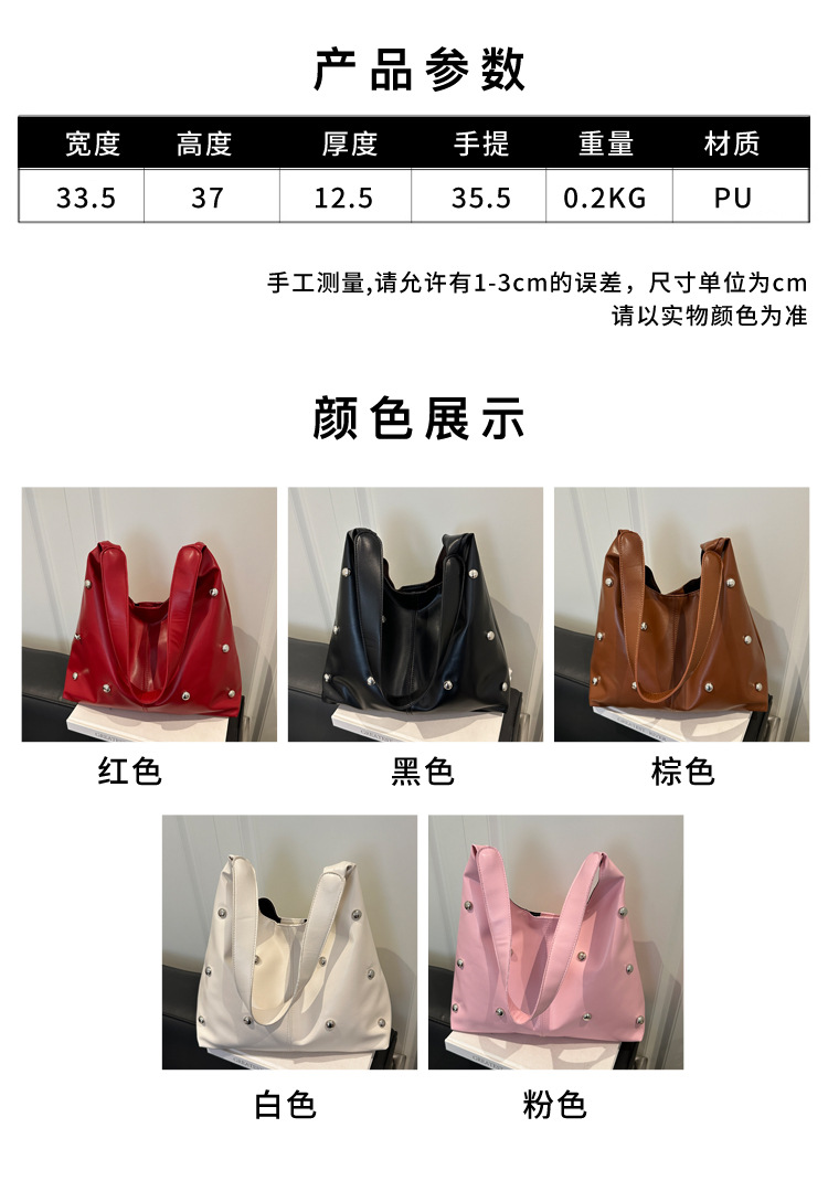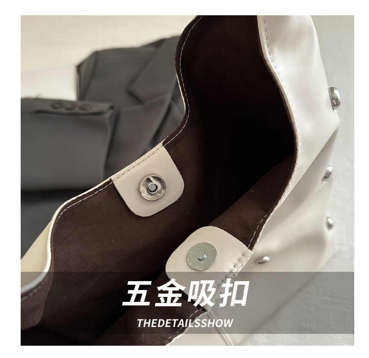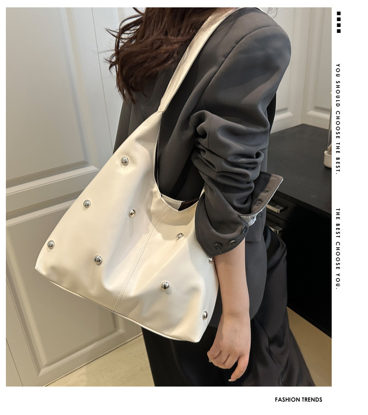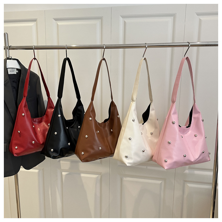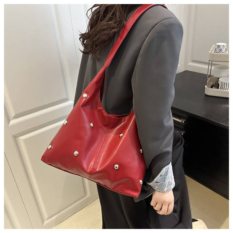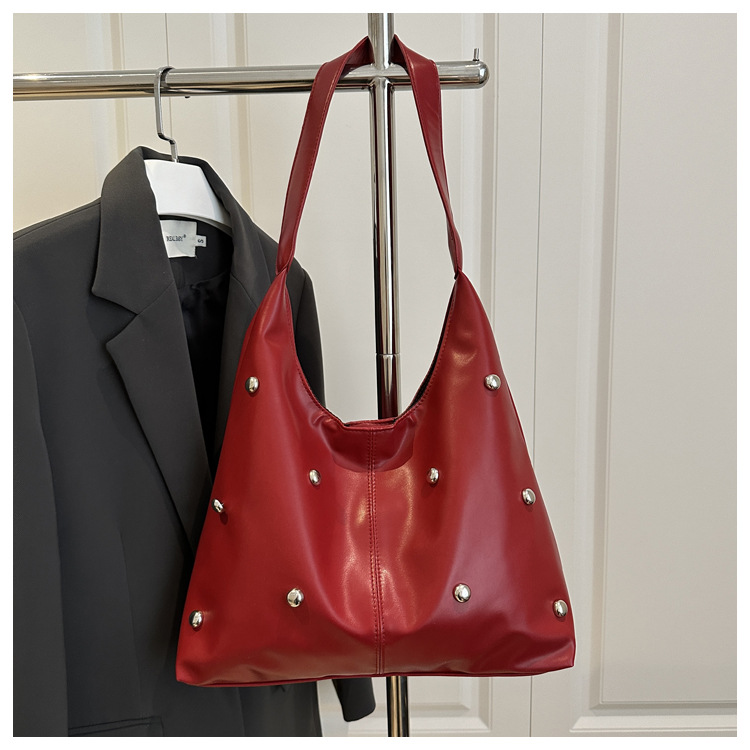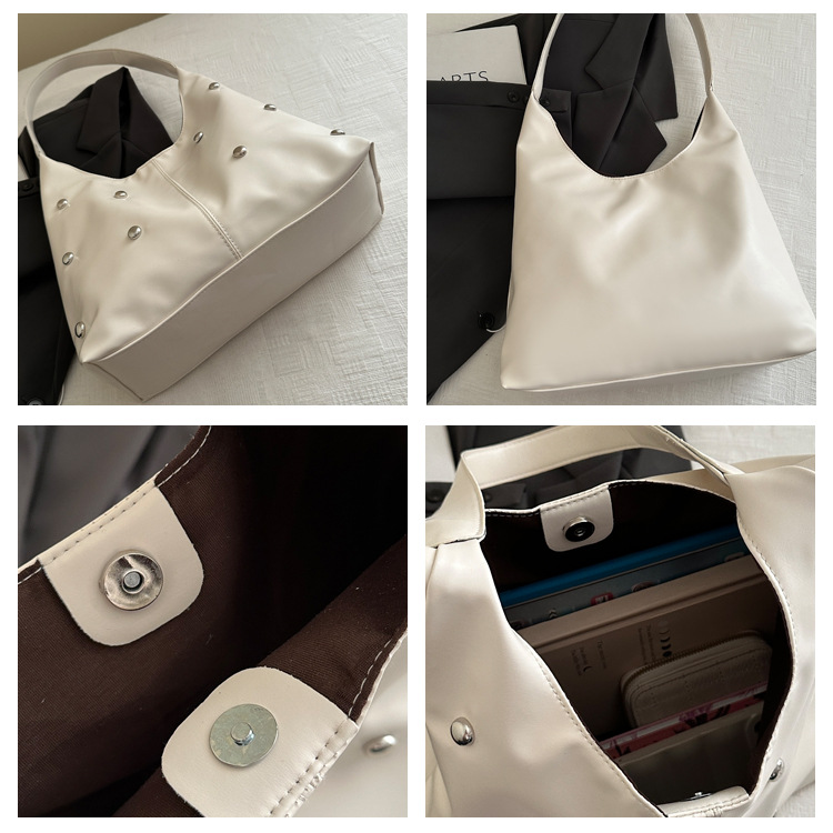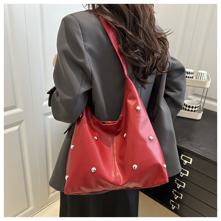通勤ファッション大容量ポータブルトートバッグ女性のための 2025 夏の新しいトレンディなリベットパーソナライズされたシングルショルダー脇の下バッグ