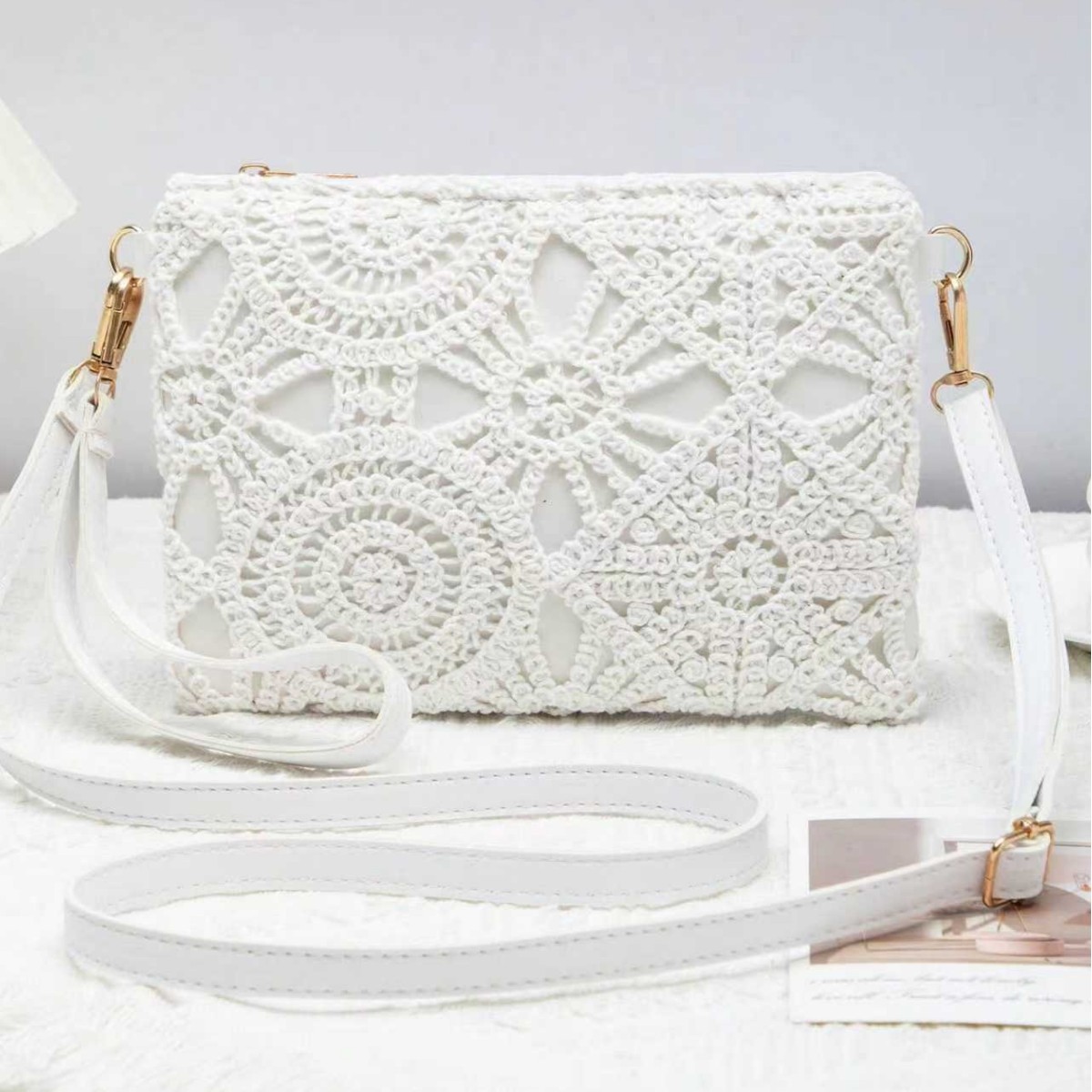2025新款波西米亚风百搭镂空斜挎编织包复古休闲沙滩花朵单肩女包
