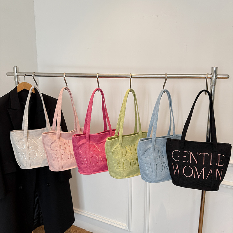 跨境刺绣字母托特包女新款时尚帆布大容量麻布手提单肩通勤上班女