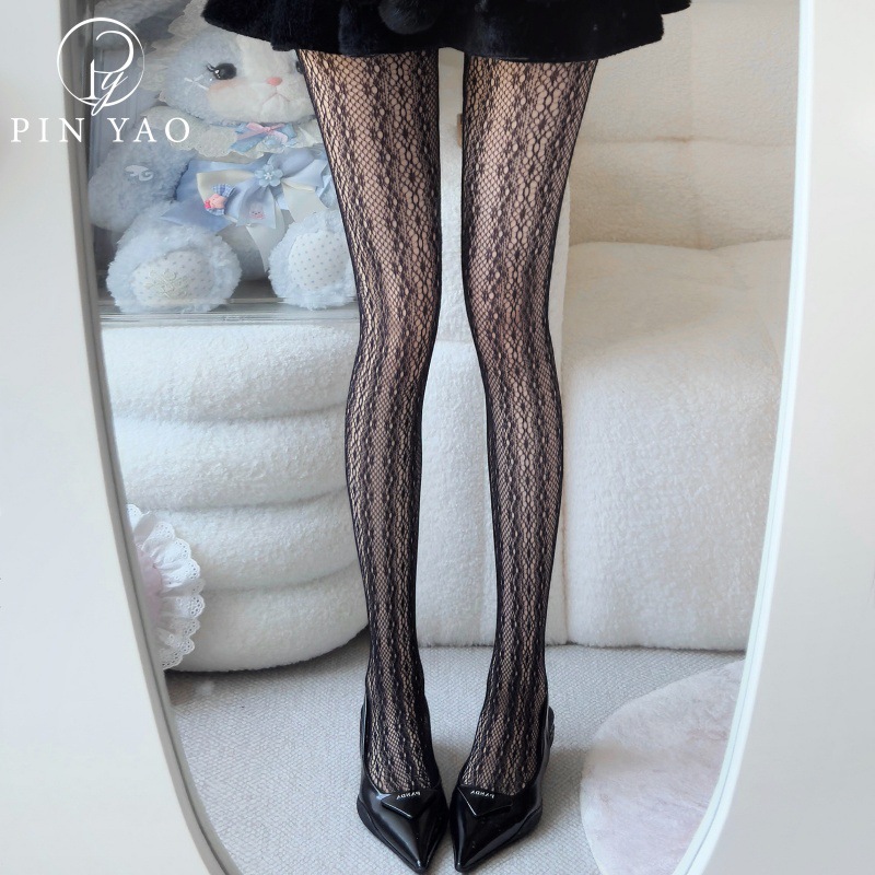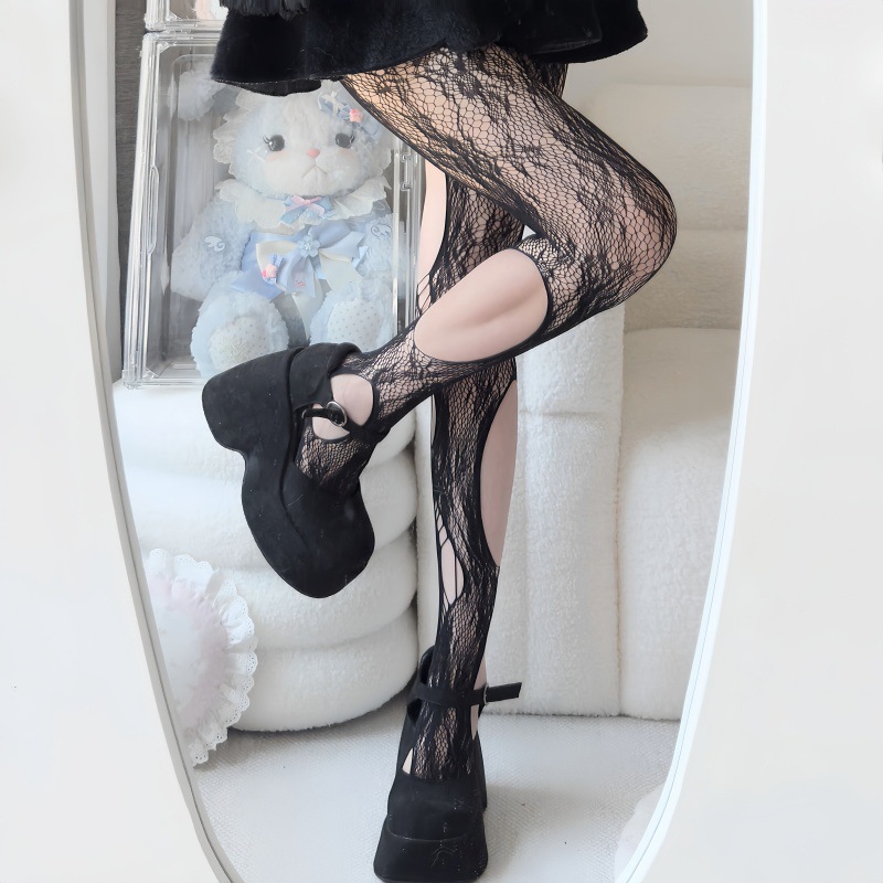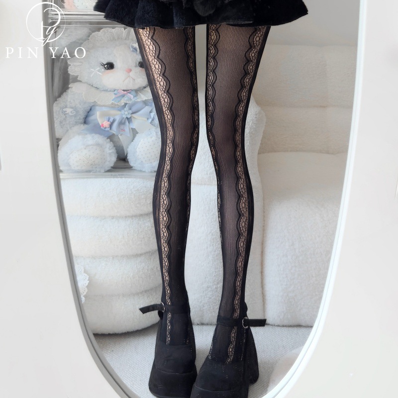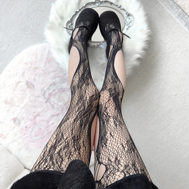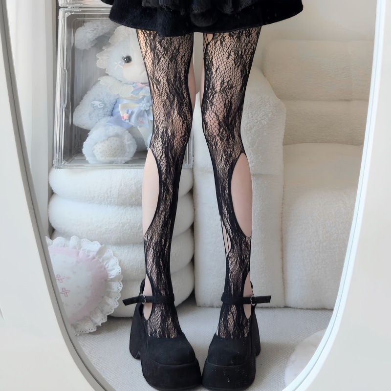 中空レース日本ロリータソックスメッシュソックスフィリグリーボトム縦縞花蔓ロリータレトロパンスト