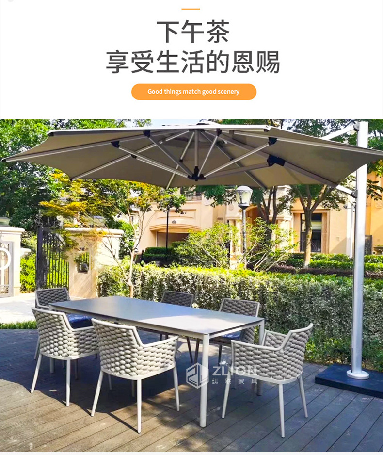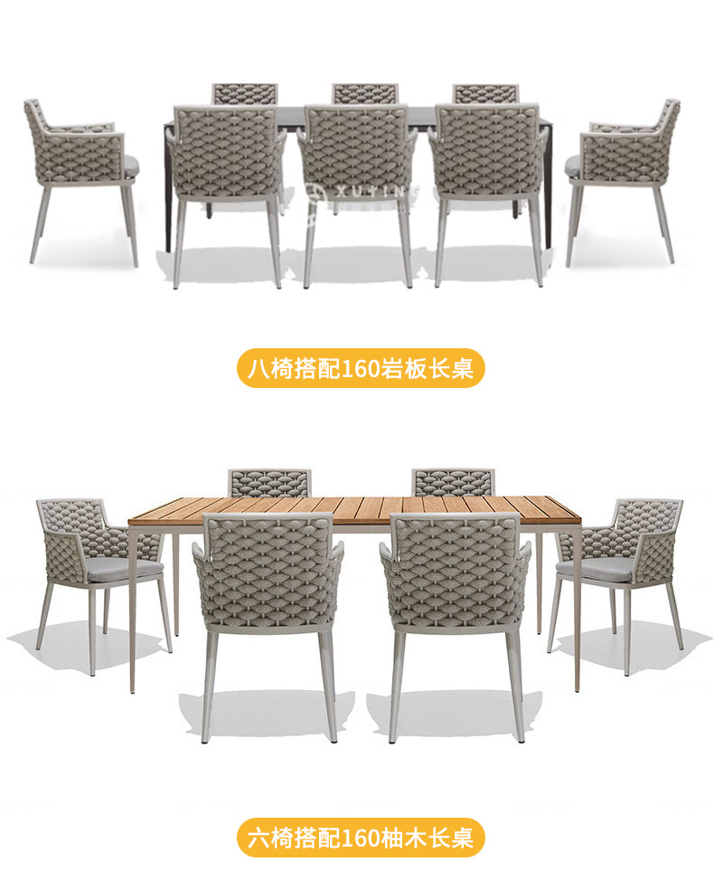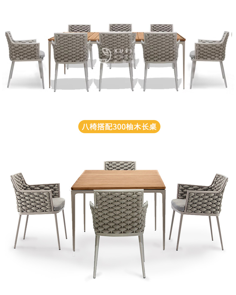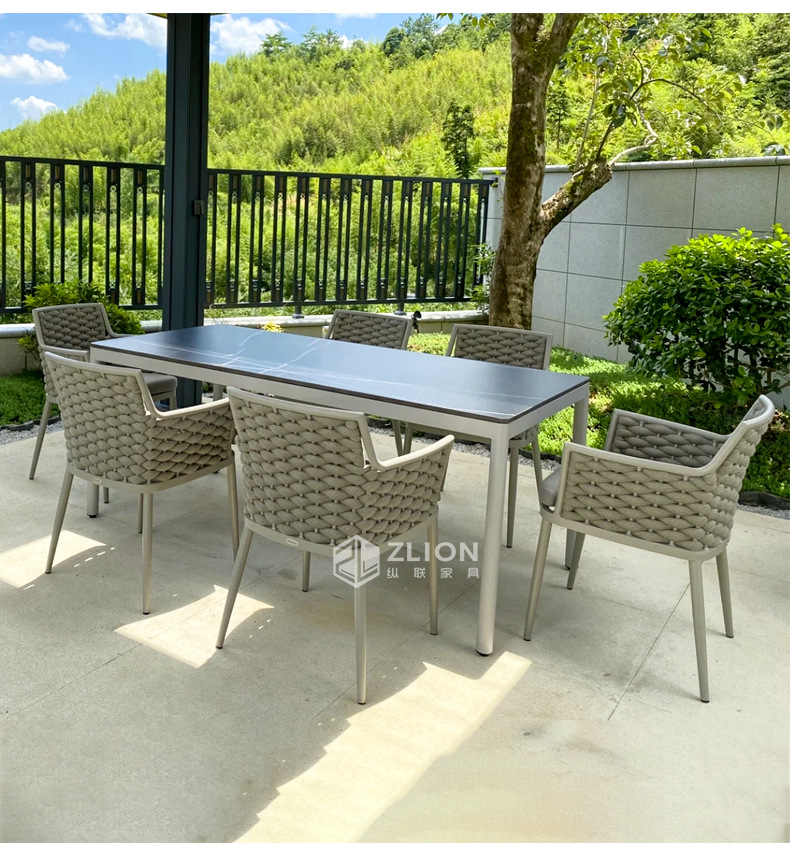 北欧屋外ヴィラ中庭テーブルと椅子ガーデンテラスロープチェア家具バルコニーレジャーダイニングテーブルホームチェアセット
