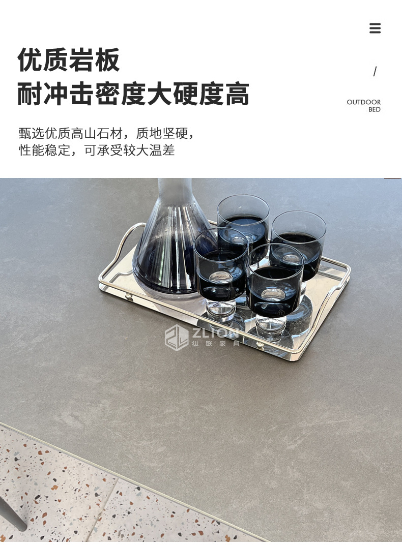 屋外ヴィラのテーブルと椅子、レジャー中庭の屋外家具、ホテルのレストランのテーブルと椅子、屋外の庭のスレート家具のテーブルと椅子