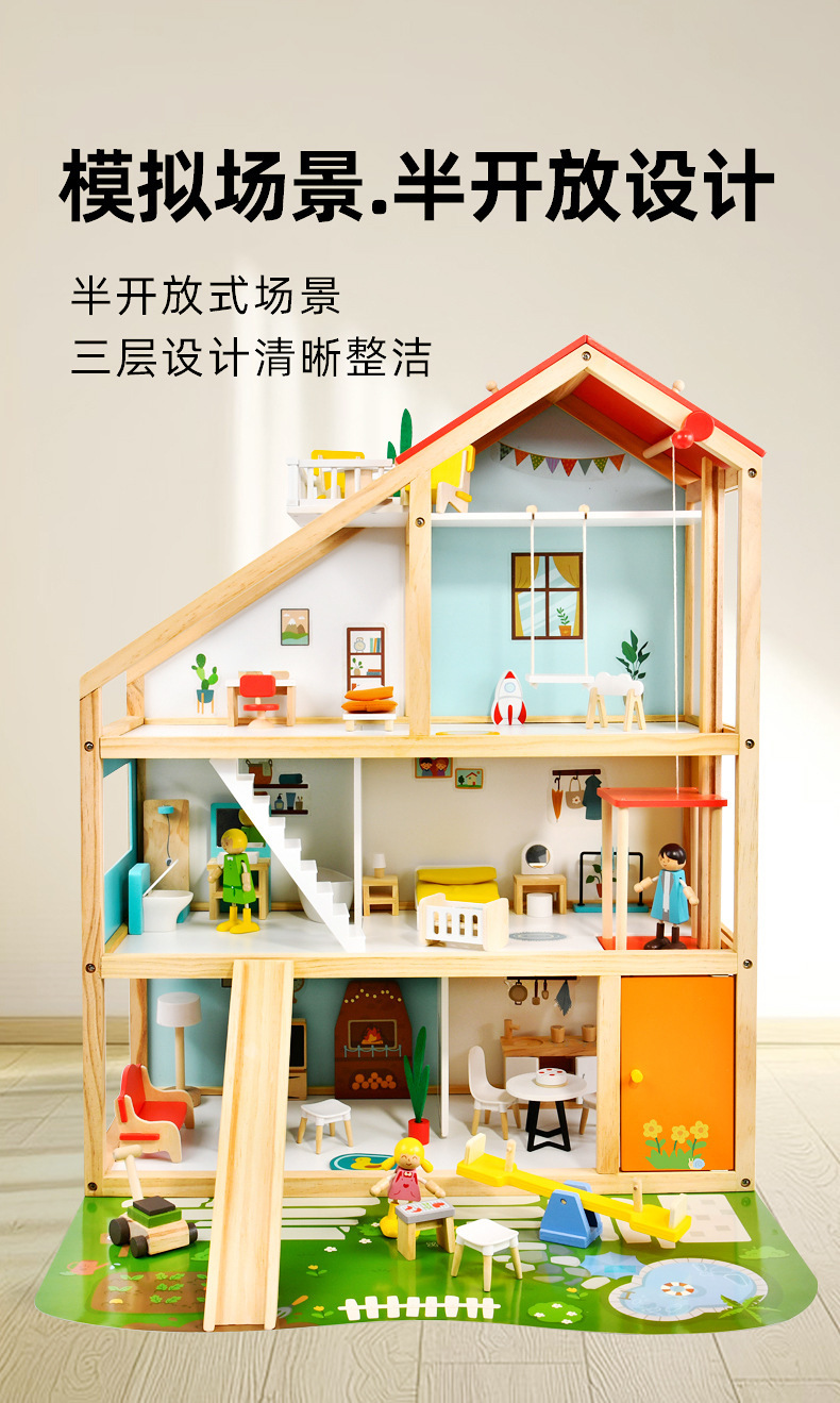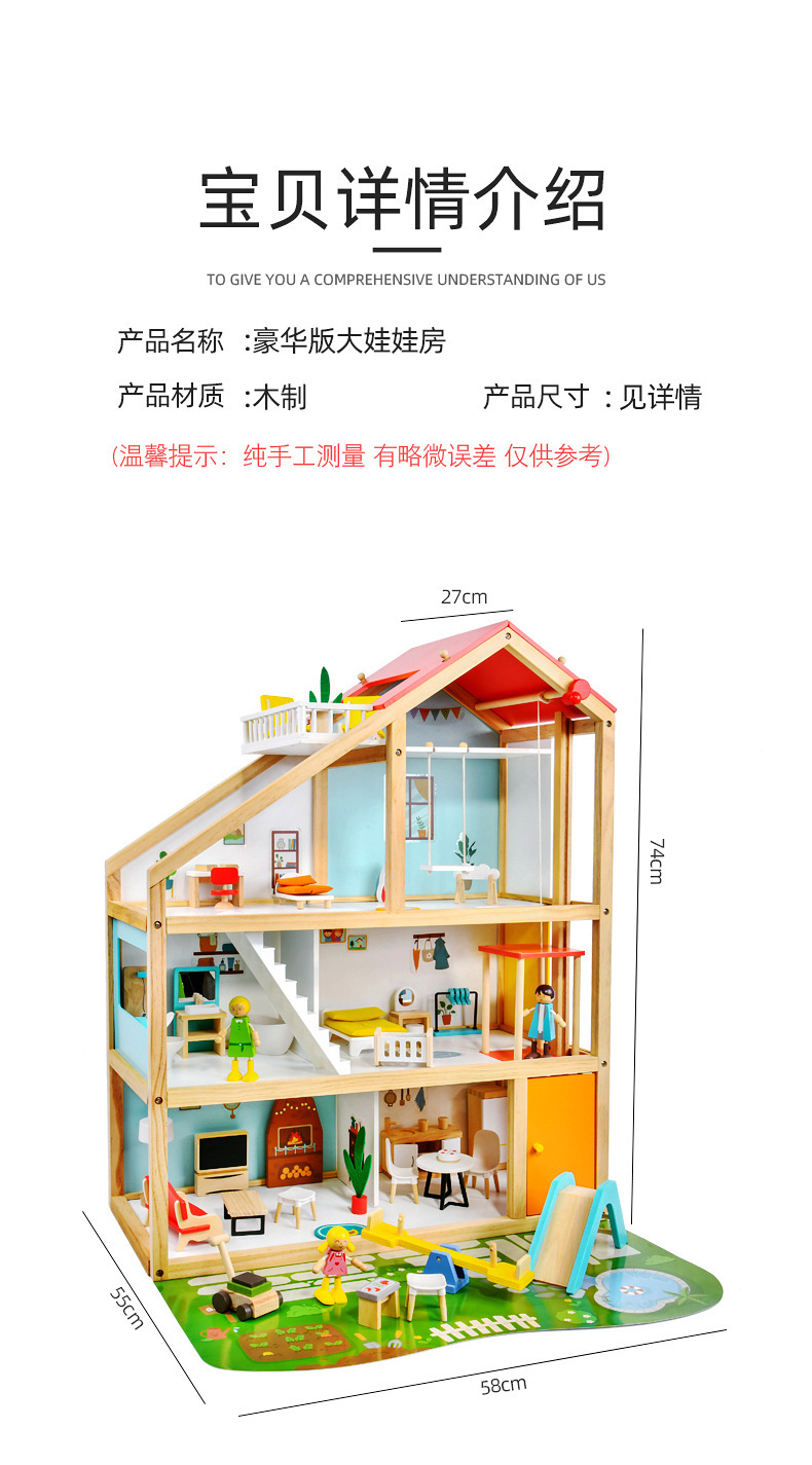 产品品名:woodnins大号三层娃娃屋