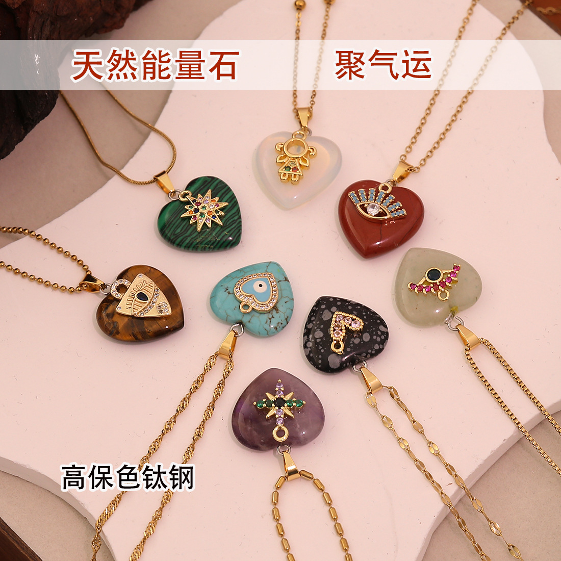 【冰萌】爱心天然石吊坠项链气质轻奢钛钢锁骨链跨境饰品N1690