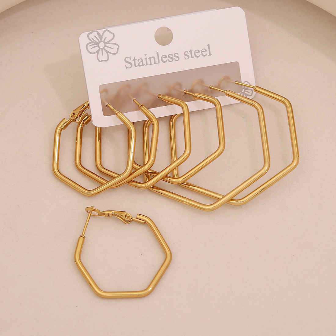 【氷萌】3pairsファッション幾何学六角形耳輪イヤリングネット赤同金金属感ピアスe6 17