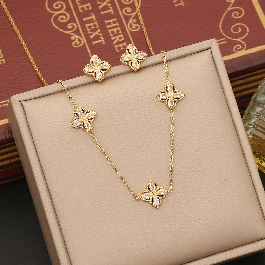 【氷萌】花ネックレスセット真珠ジルコンステンレスネックレス欧米クロスボーダーアクセサリーn102