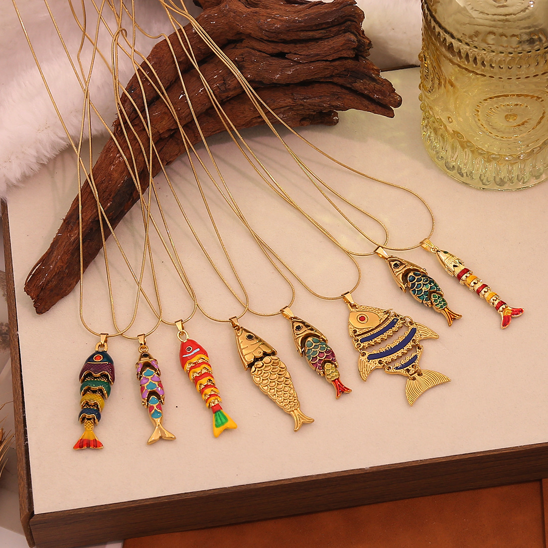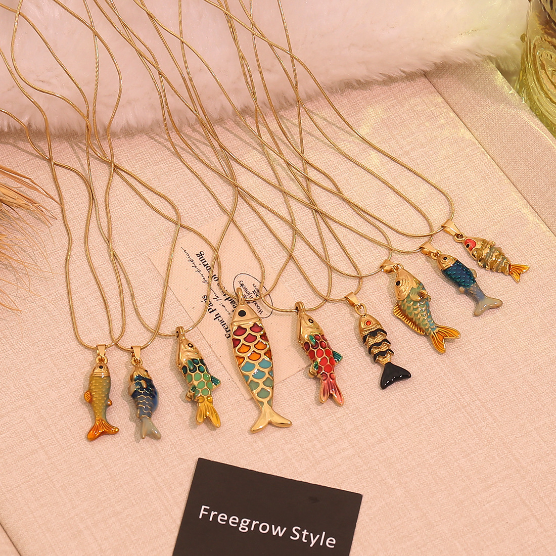 【冰萌】长款复古立体锦鲤吊坠项链轻奢钛钢毛衣链配饰N1682