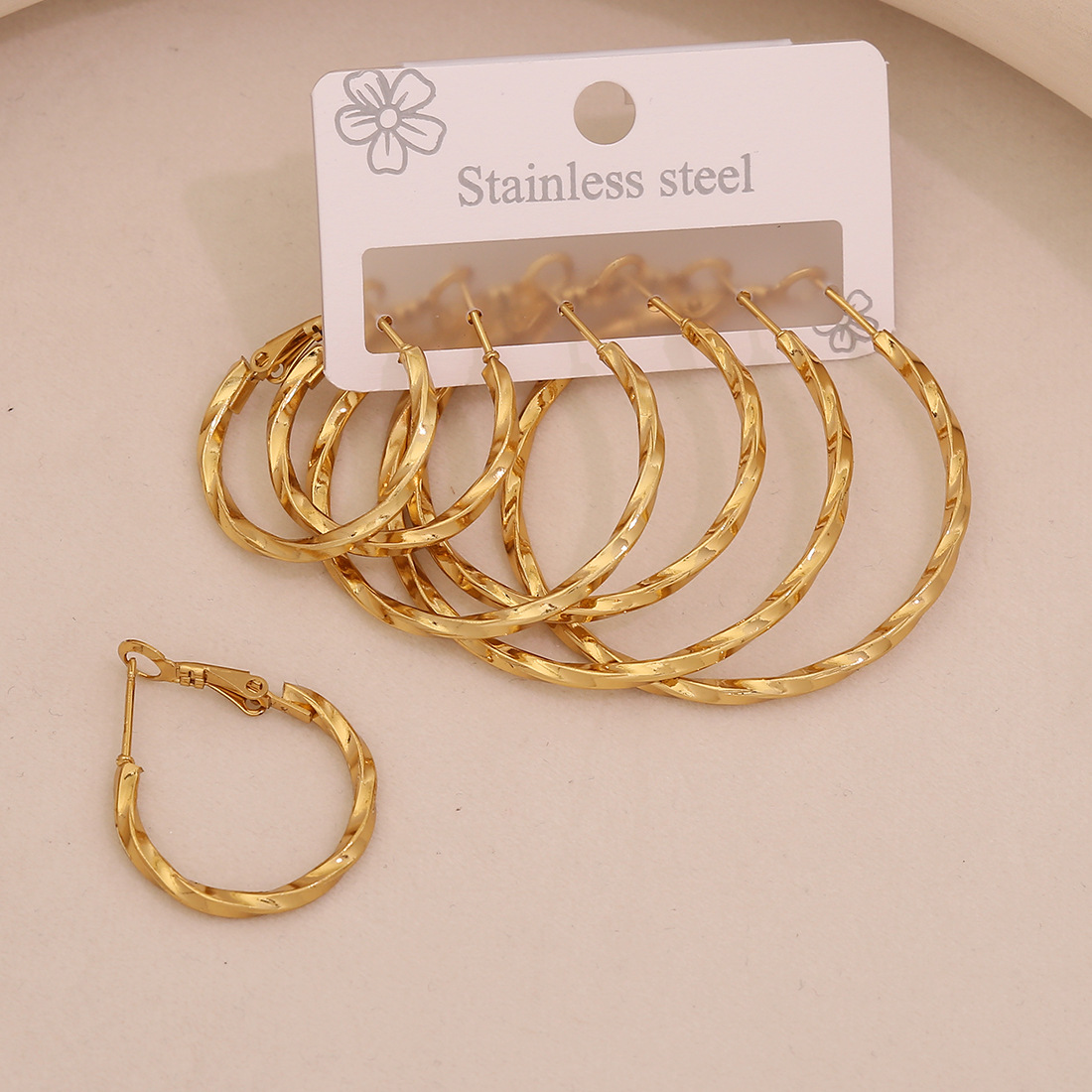 【冰萌】3对装水钻素圈耳环轻奢钛钢耳钉高级感百搭耳饰E629