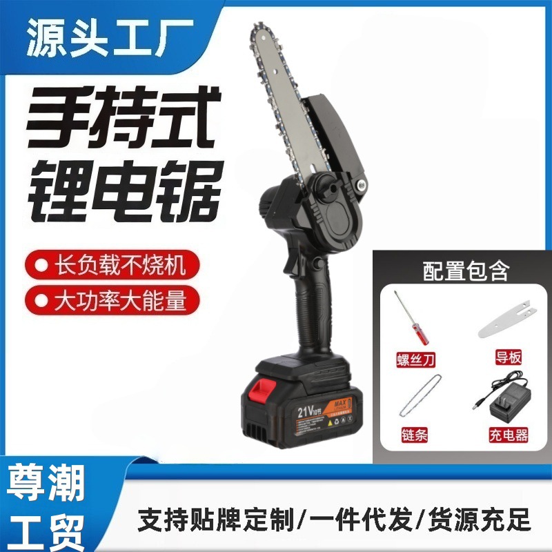 4寸6寸8寸剧锂电电锯手提式电链锯户外无线伐木单手锯砍树修枝锯