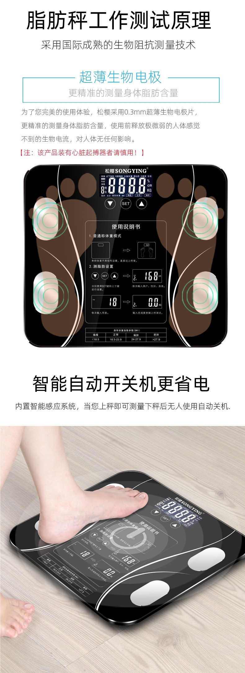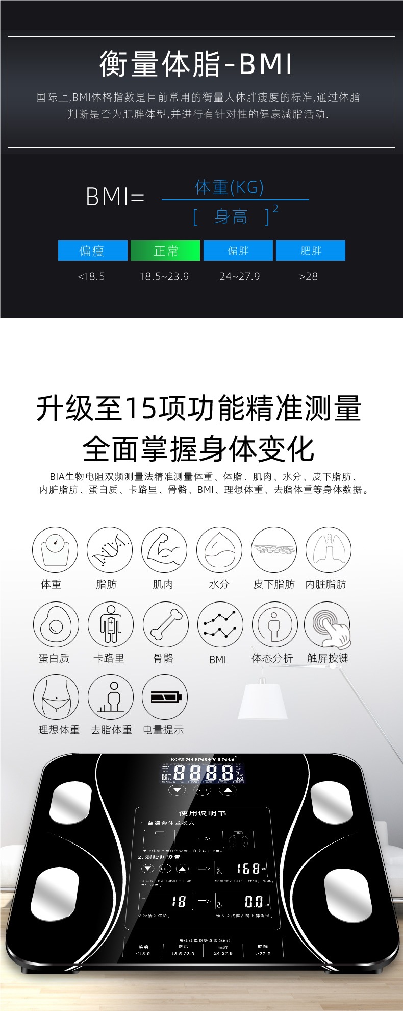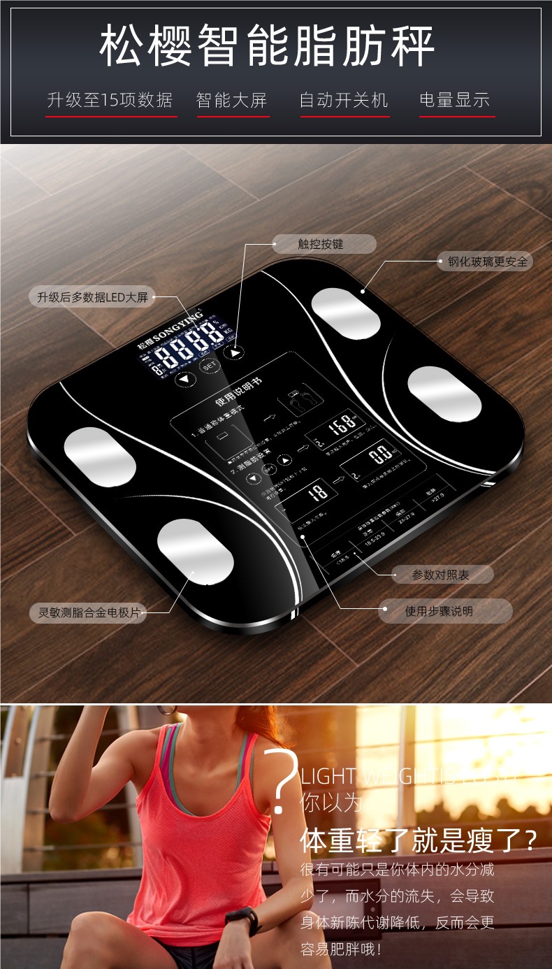 智能充电电池测脂人体称体脂秤usb电子体重秤重计家用款减肥