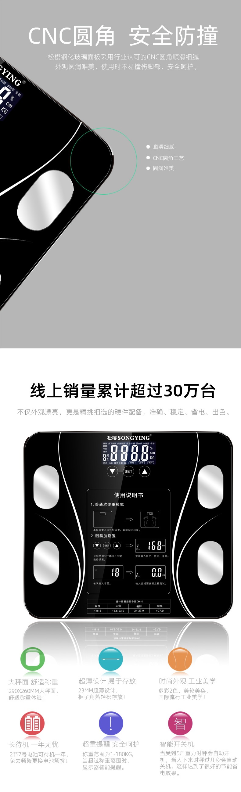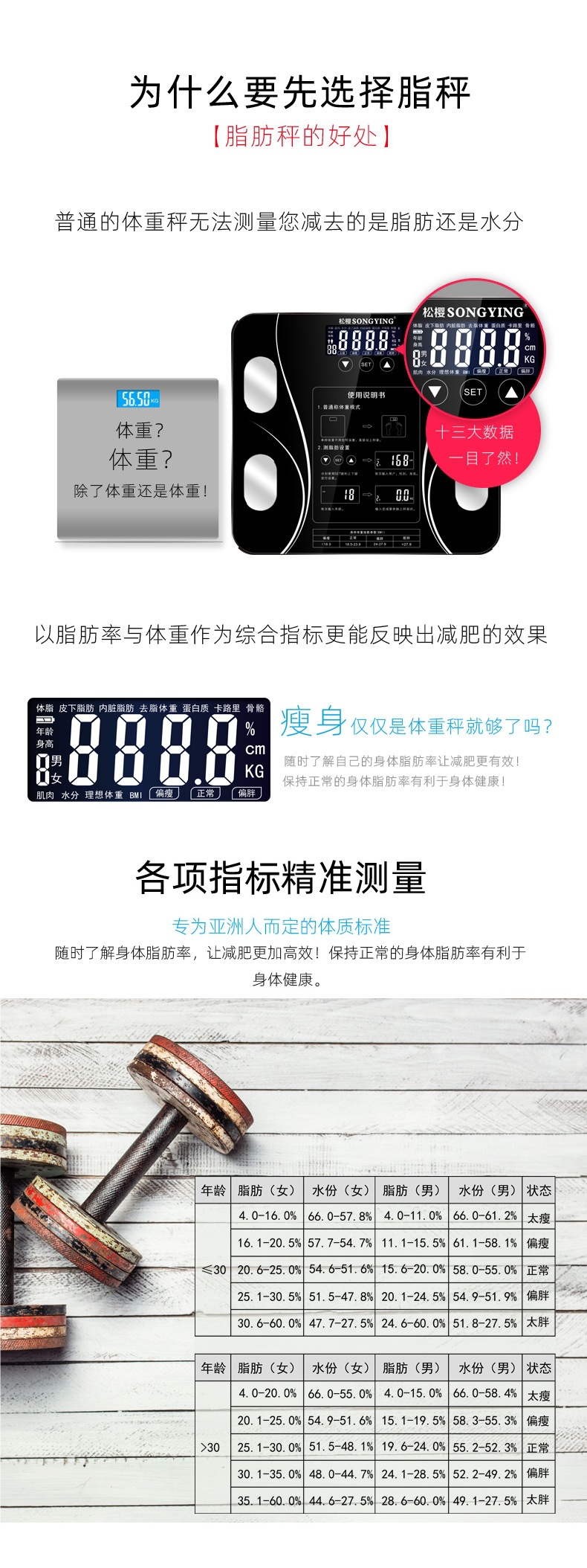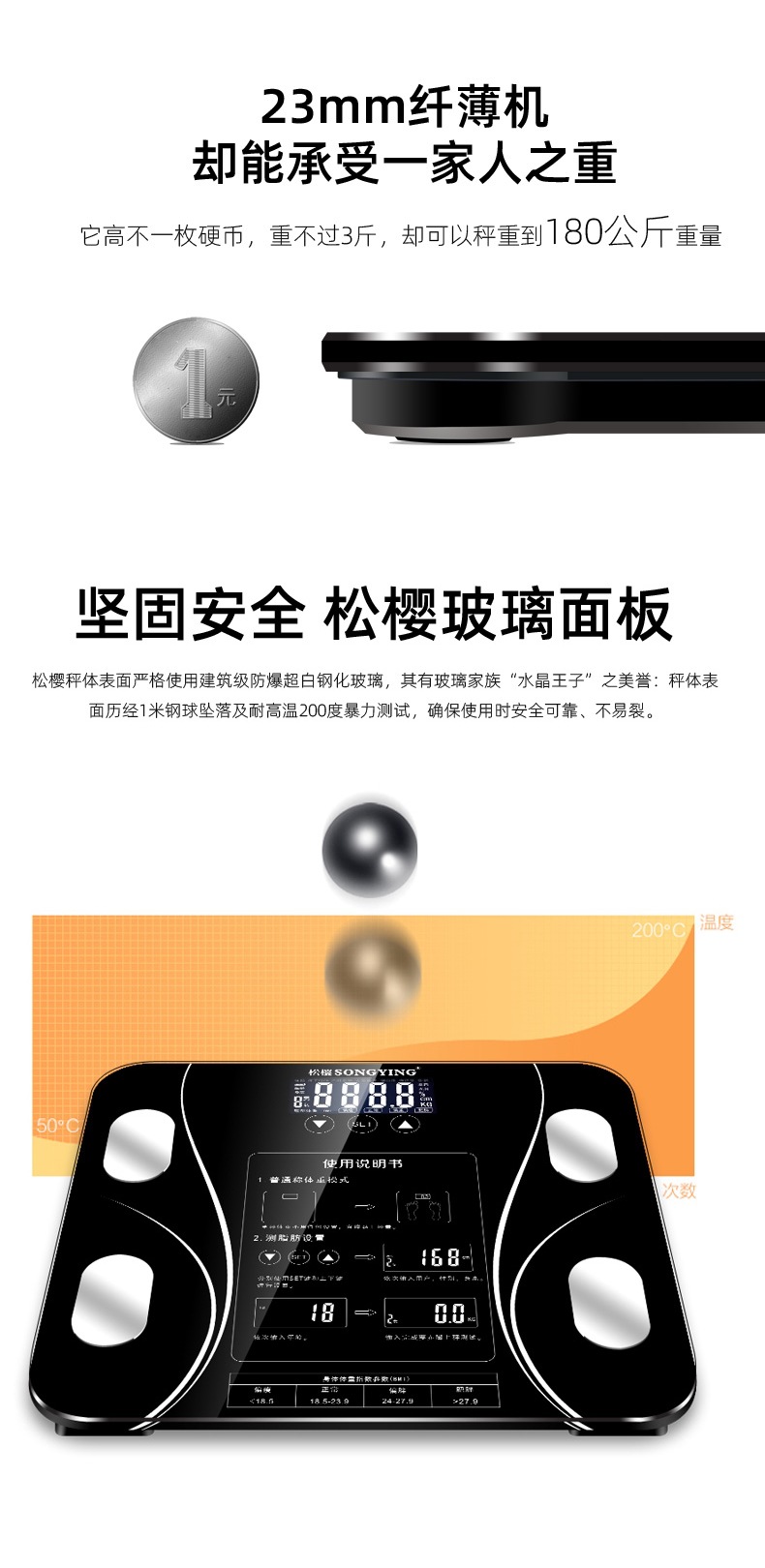 智能充电电池测脂人体称体脂秤usb电子体重秤重计家用款减肥