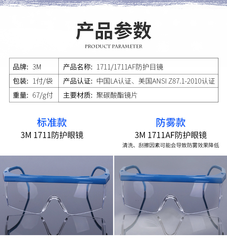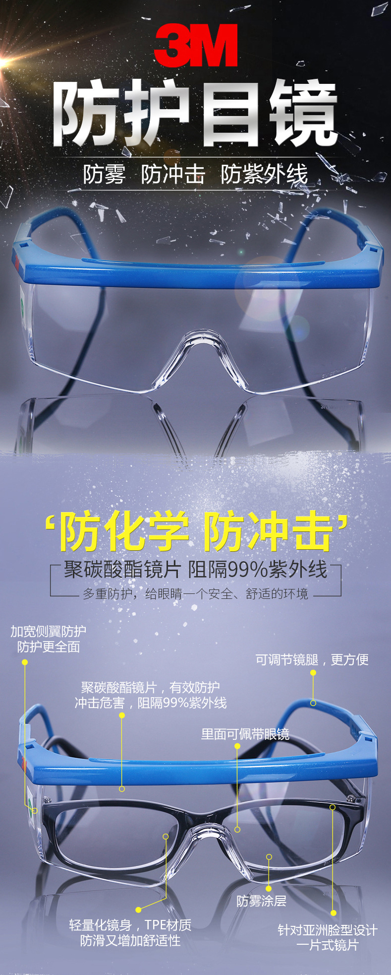 3m 1711af飛沫防止防曇平光保護メガネ防爆防風砂防止ほこり防止紫外線防止ゴーグル