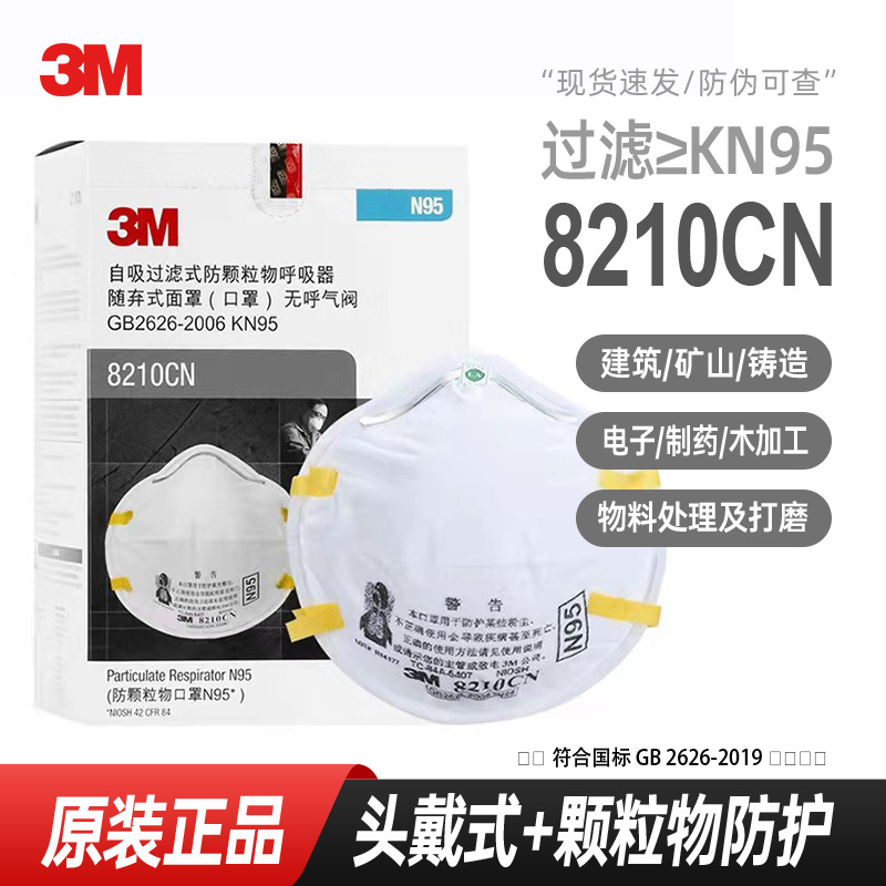 3M8210マスク 工業用防塵 石炭鉱山 製薬生産加工製造 呼吸保護 ヘッドマウントカップ型