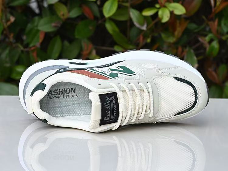男性靴2025新型夏のネットの通気性の柔らかい底の運動のカジュアルシューズの青少年は厚い底のお父さんのファッションの靴を高く上げます。