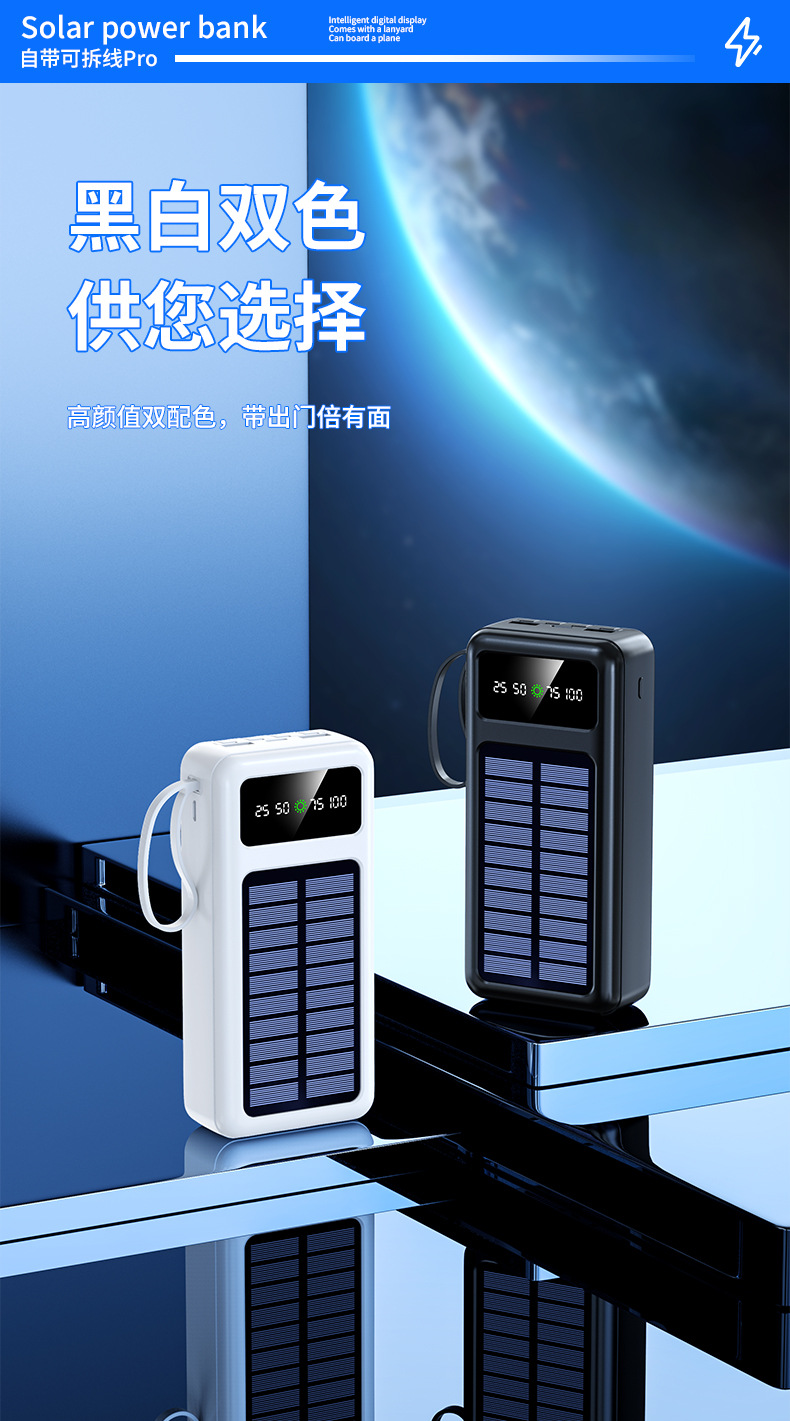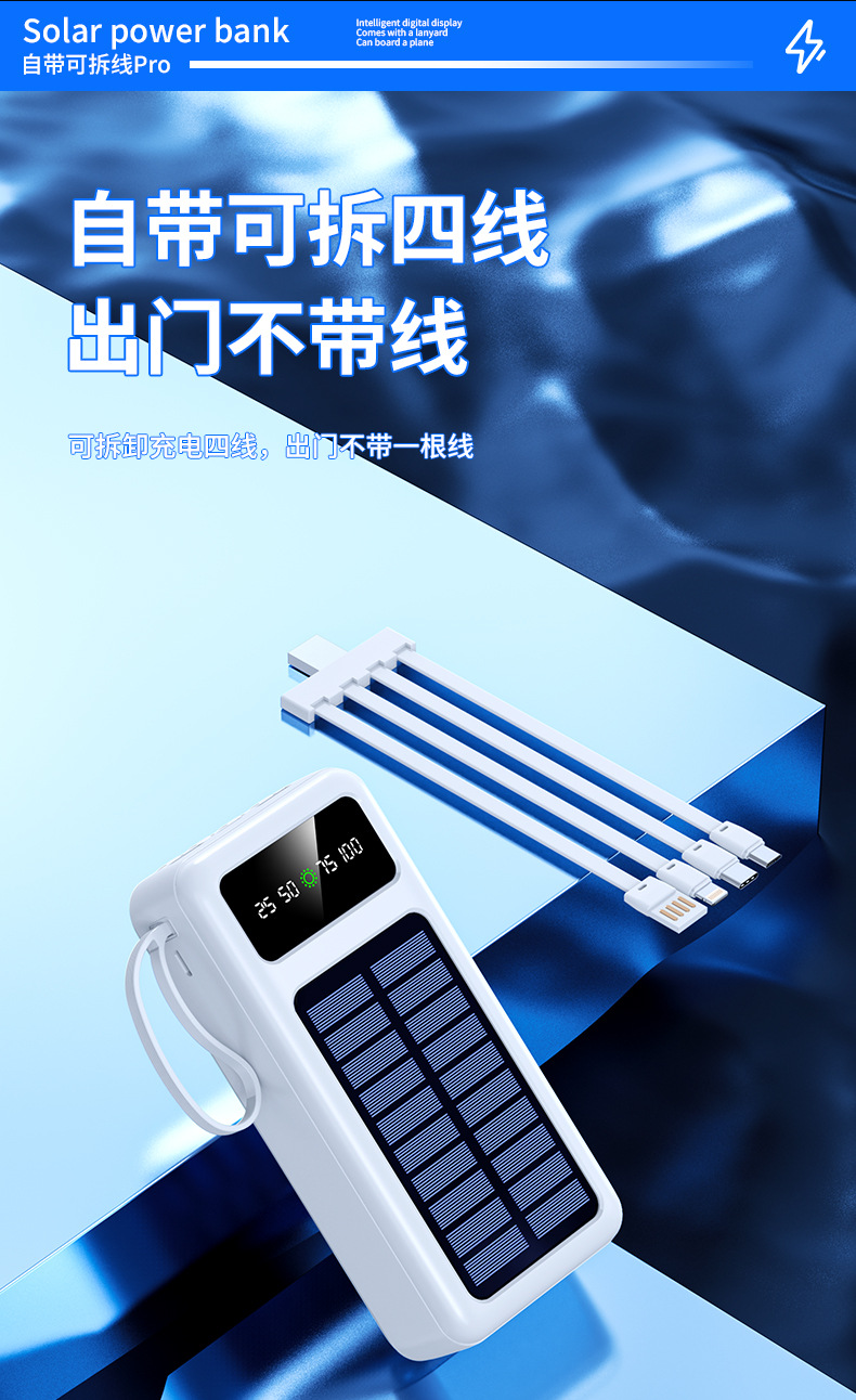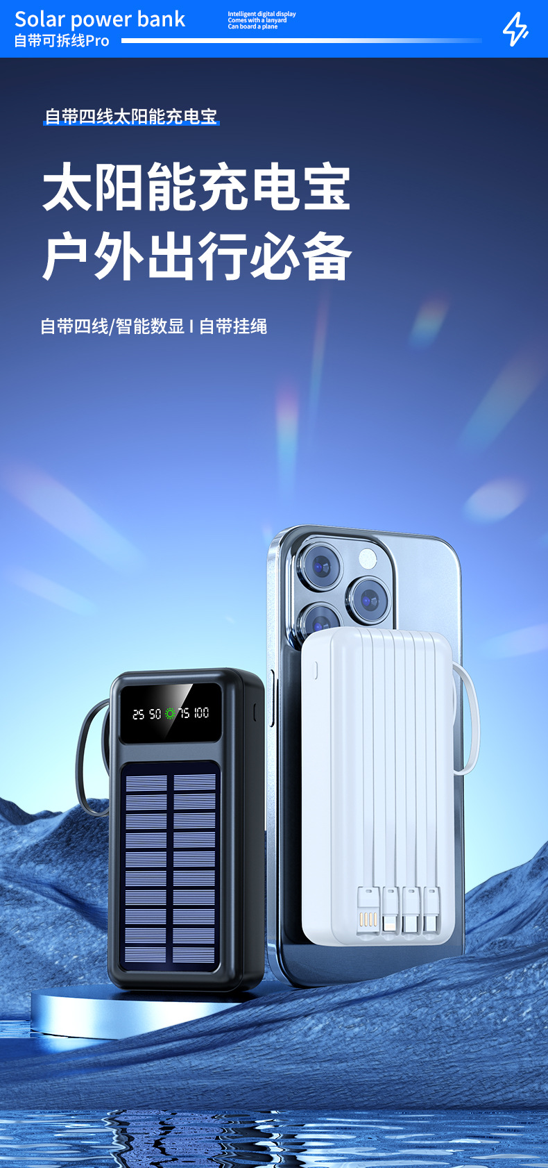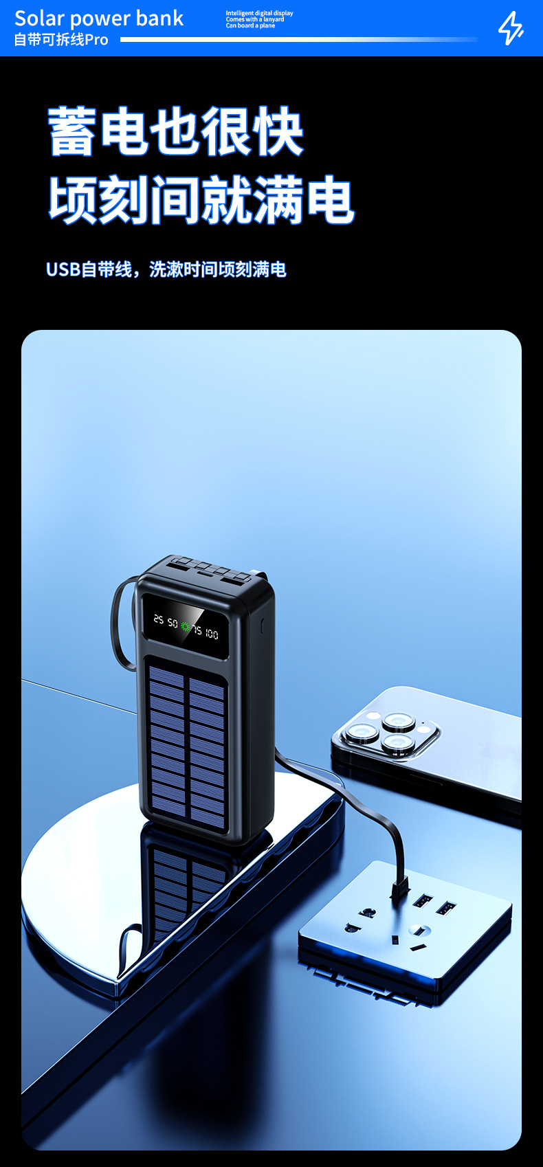 新型屋外太陽光充電宝10000ミリアンペア超大容量携帯デジタル表示自帯線移動電源