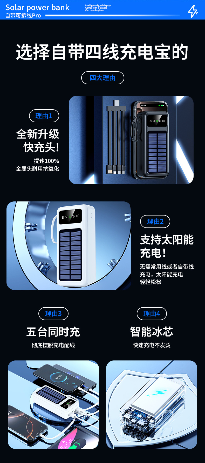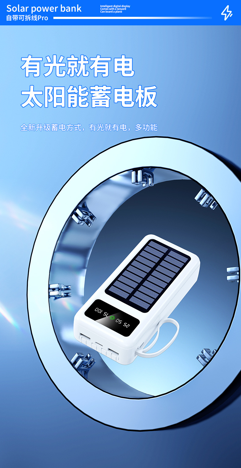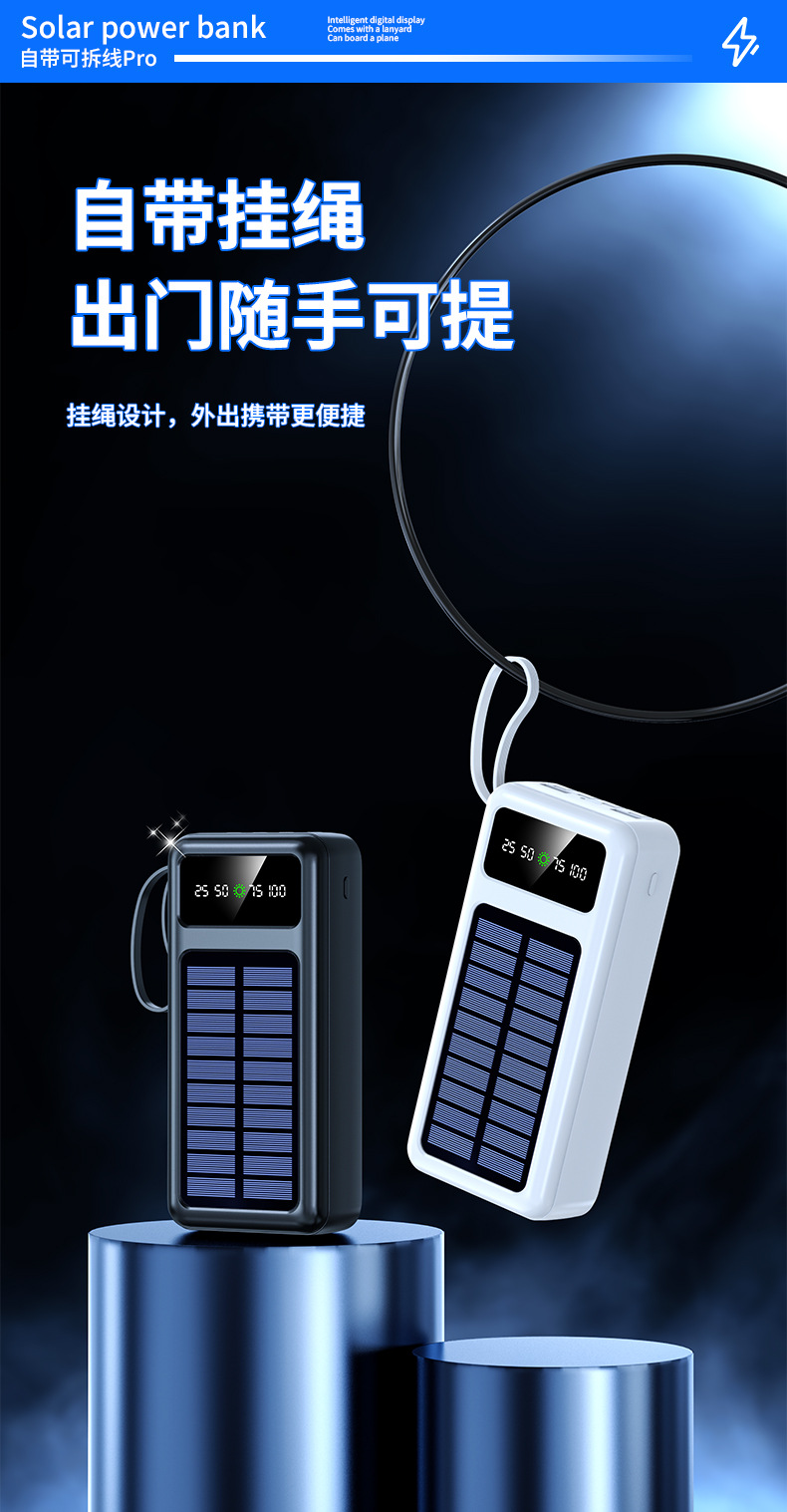 新型屋外太陽光充電宝10000ミリアンペア超大容量携帯デジタル表示自帯線移動電源