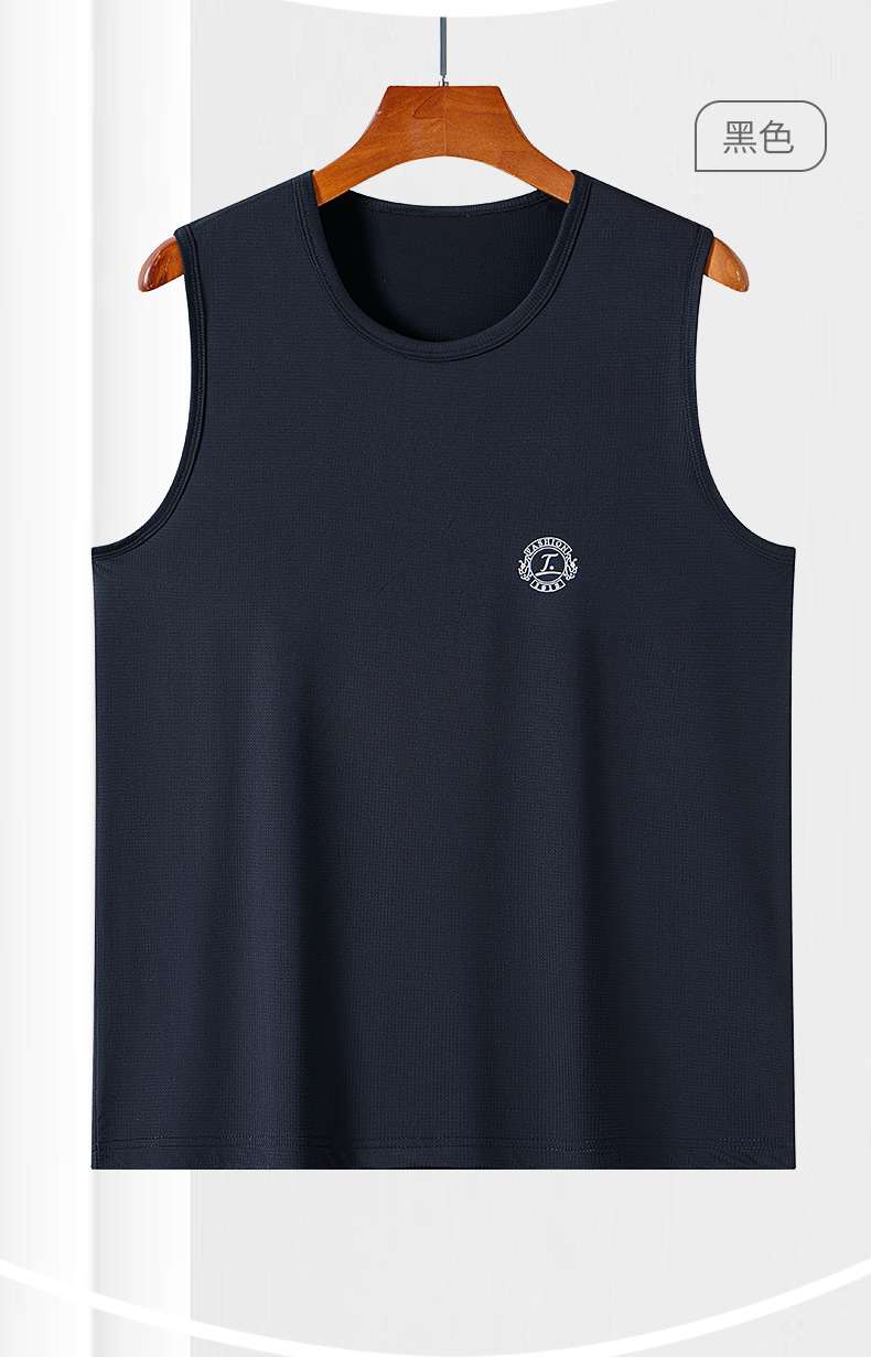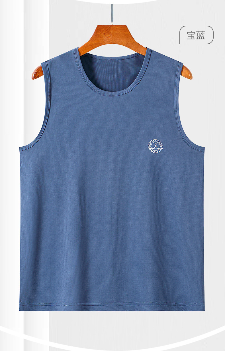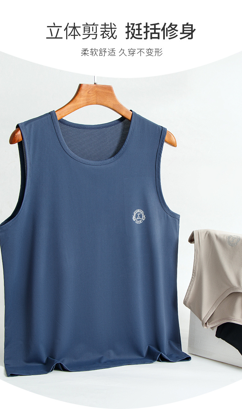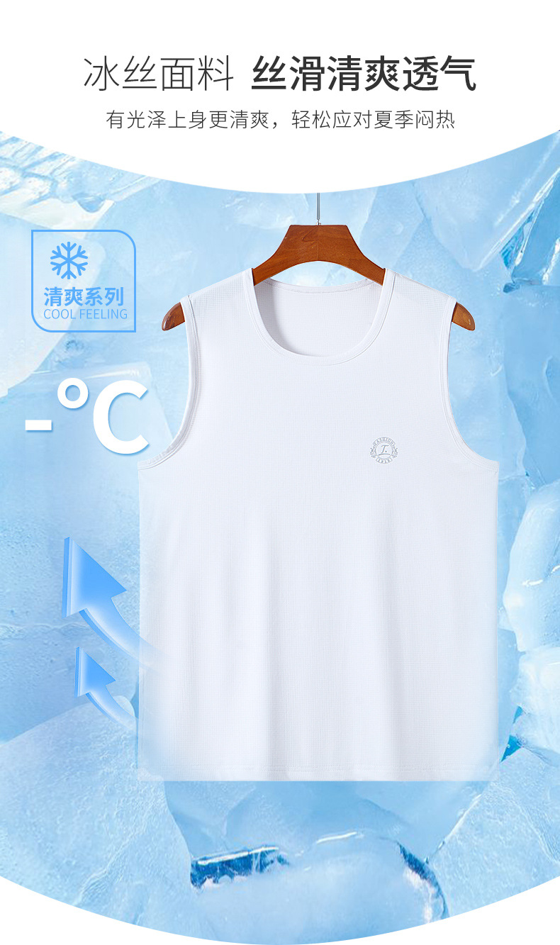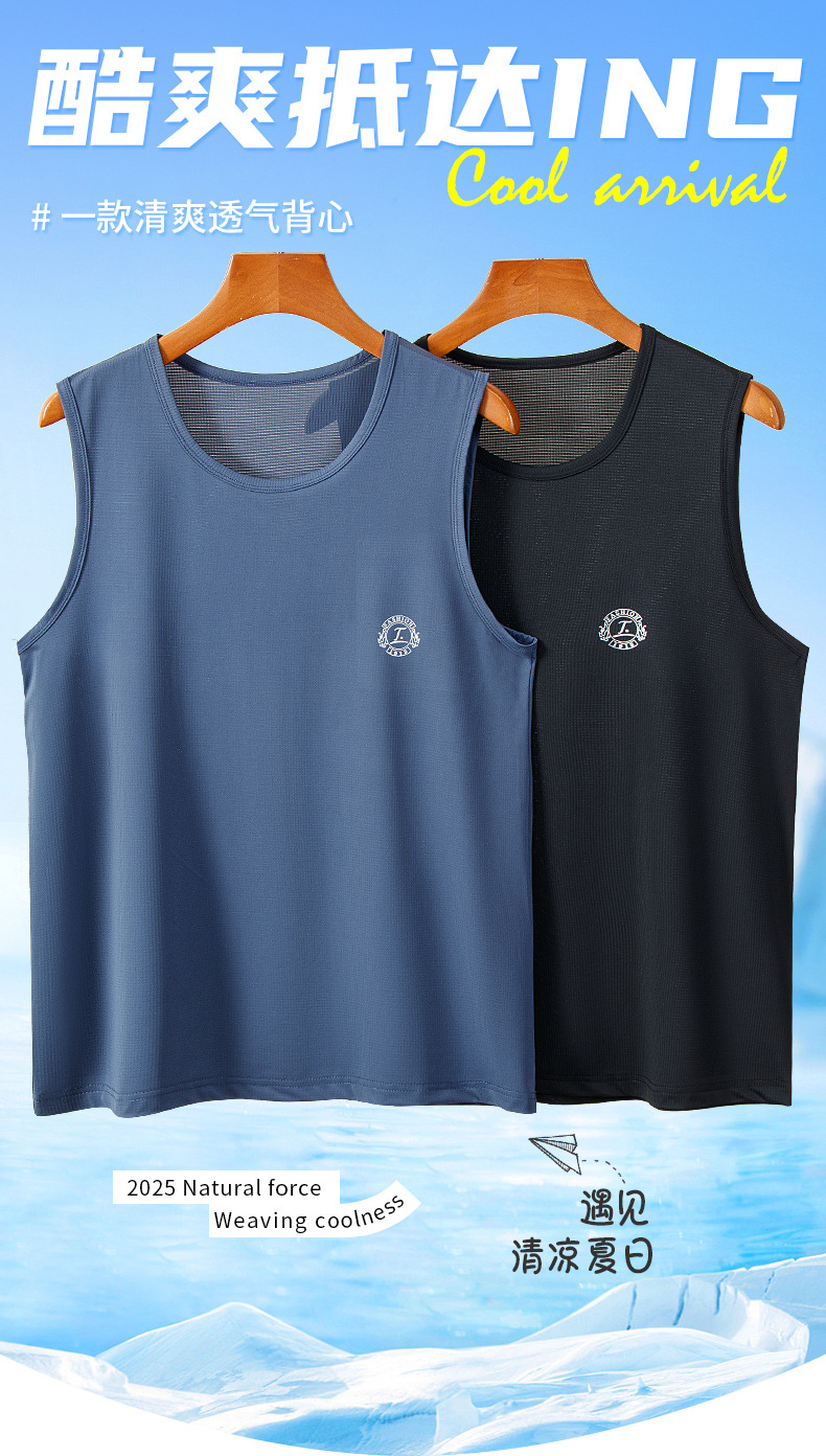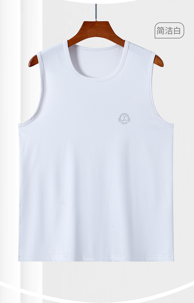 スポーツベストメンズアイスシルク夏薄い中空メッシュランニングカジュアルメンズワイドショルダーホワイトボトリングシャツ