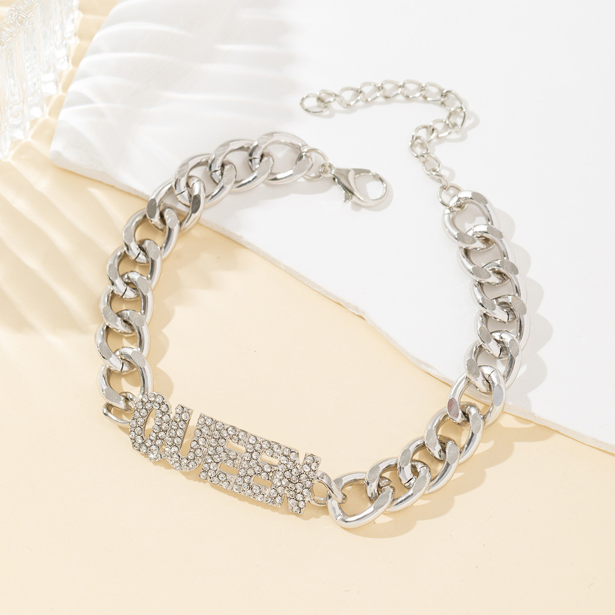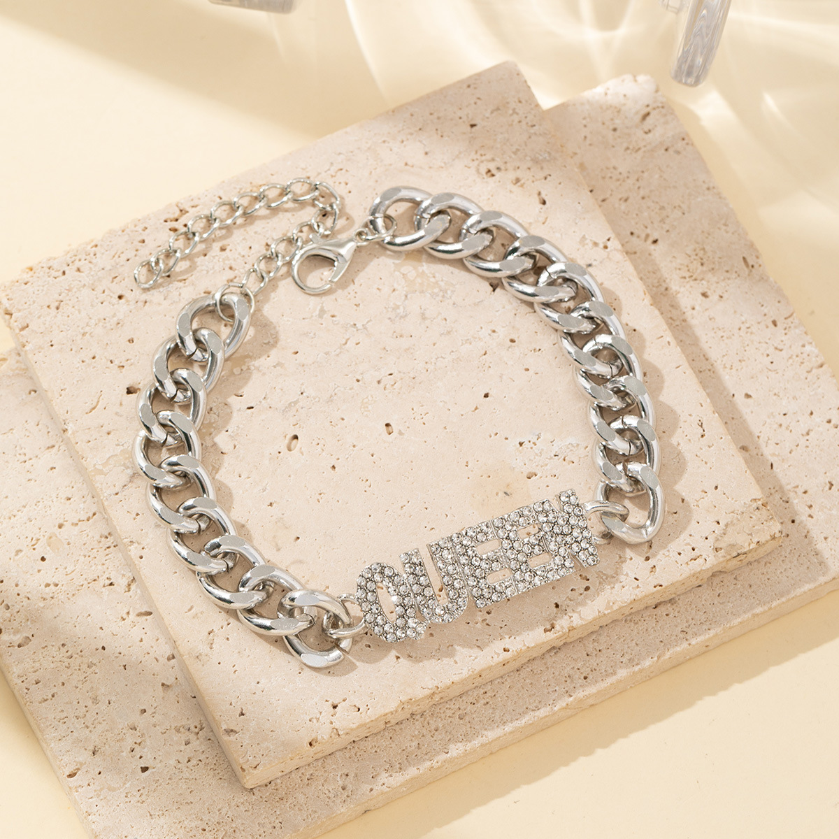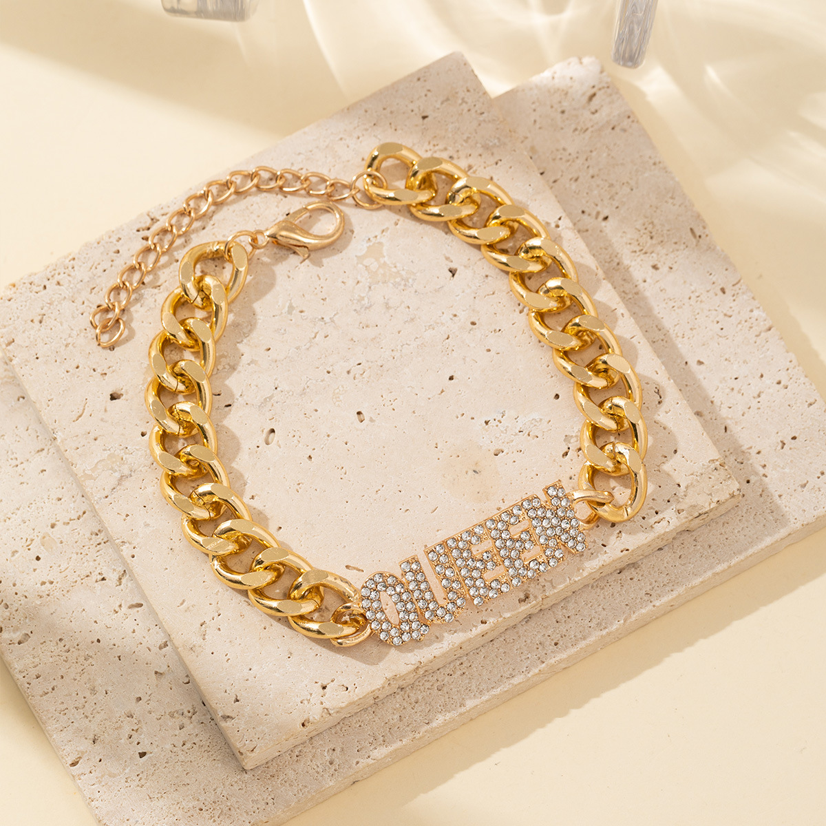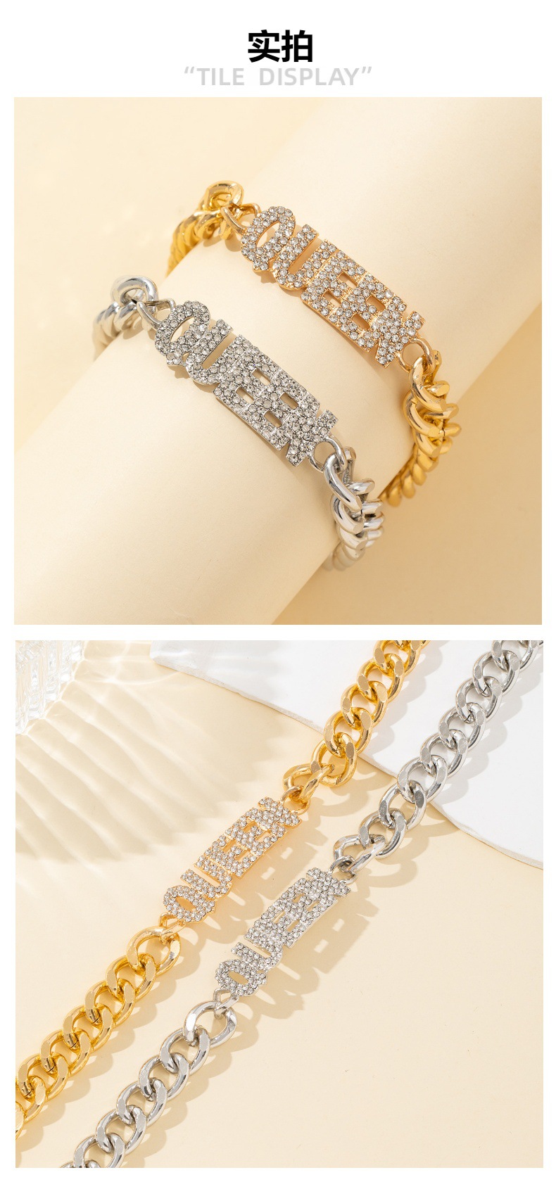 ヨーロッパとアメリカの新しいファッションヒップホップ合金レタークイーンフルラインストーンキューバブレスレットライト高級多用途ブレスレットジュエリー