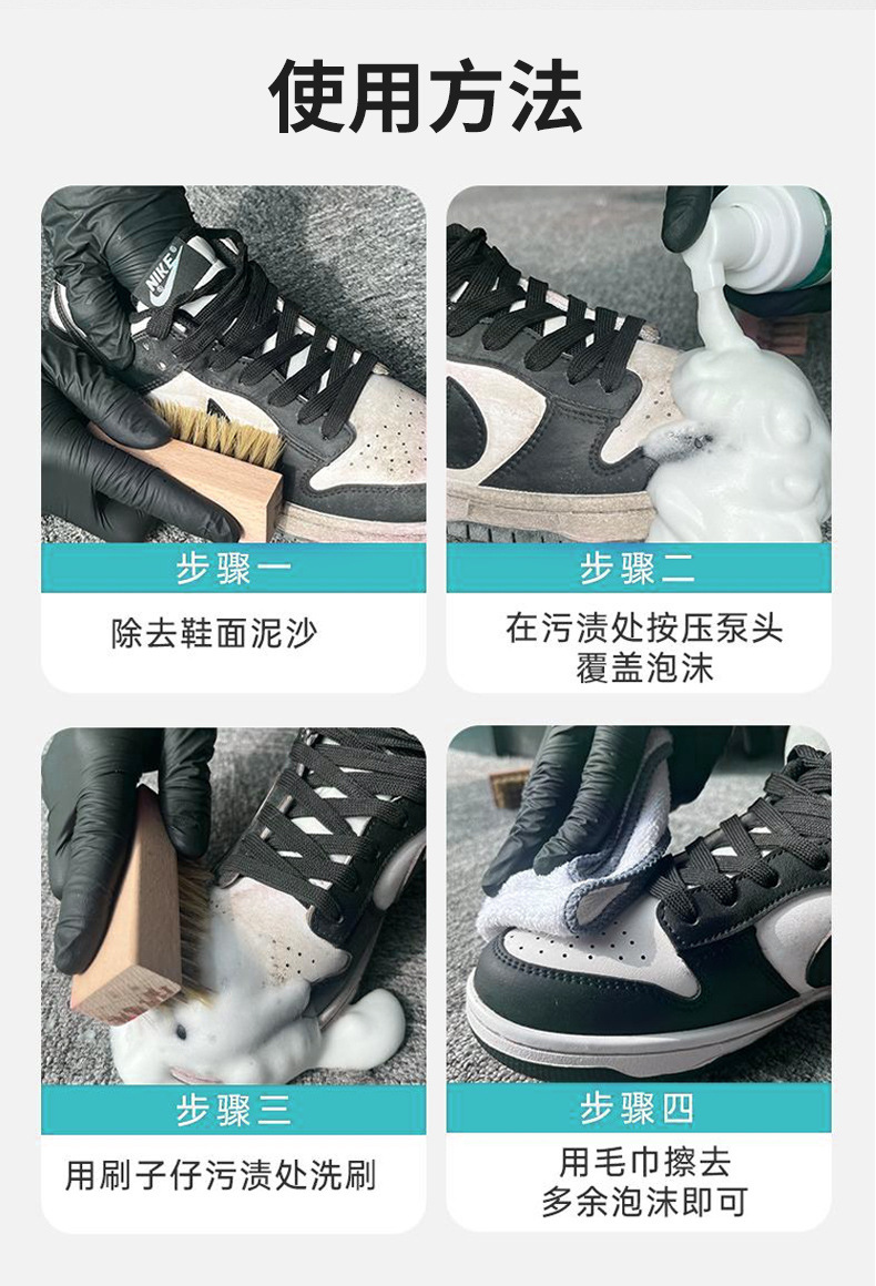 小白鞋干洗清洗剂去污增白去黄洗鞋擦鞋泡沫免水洗清洁剂分销代发