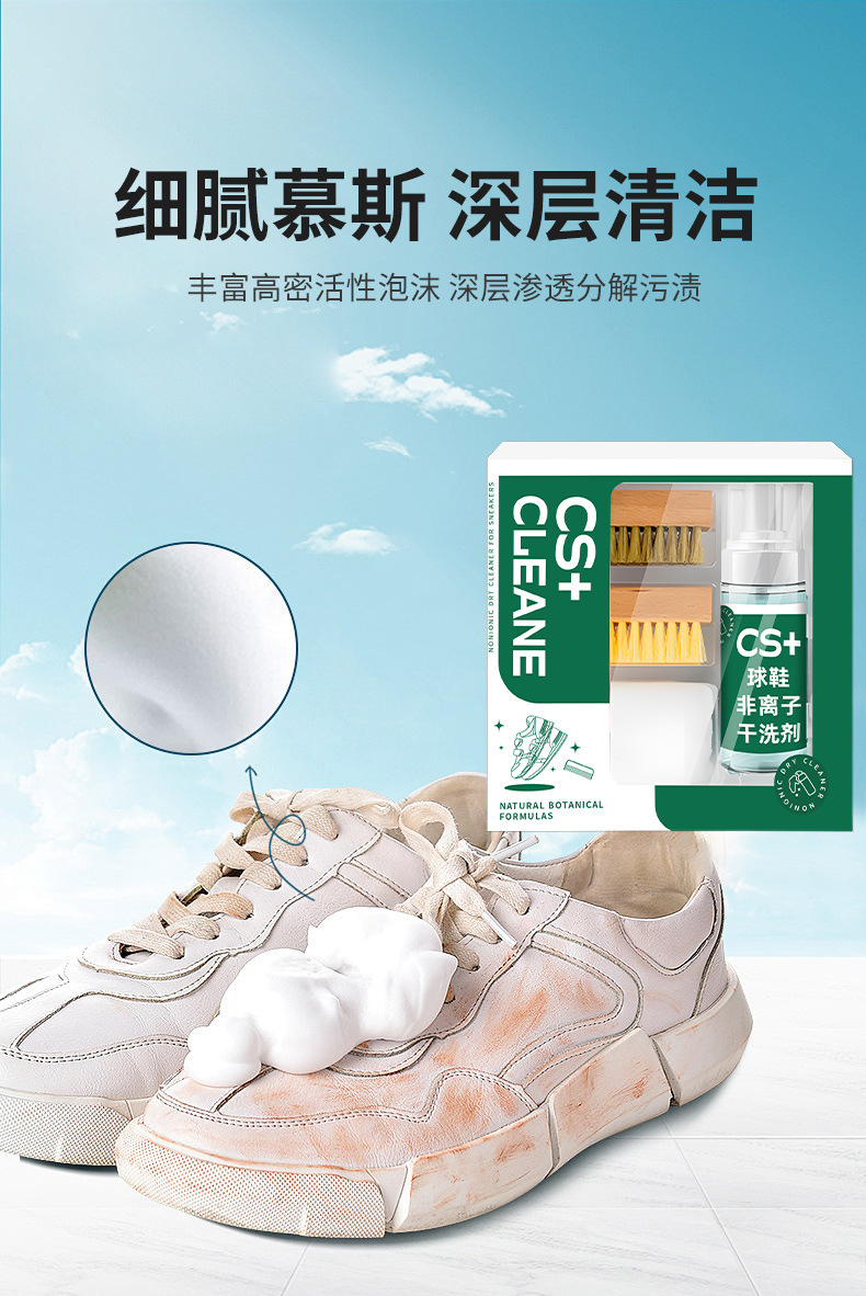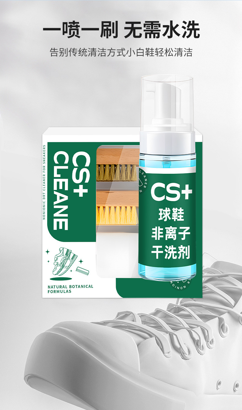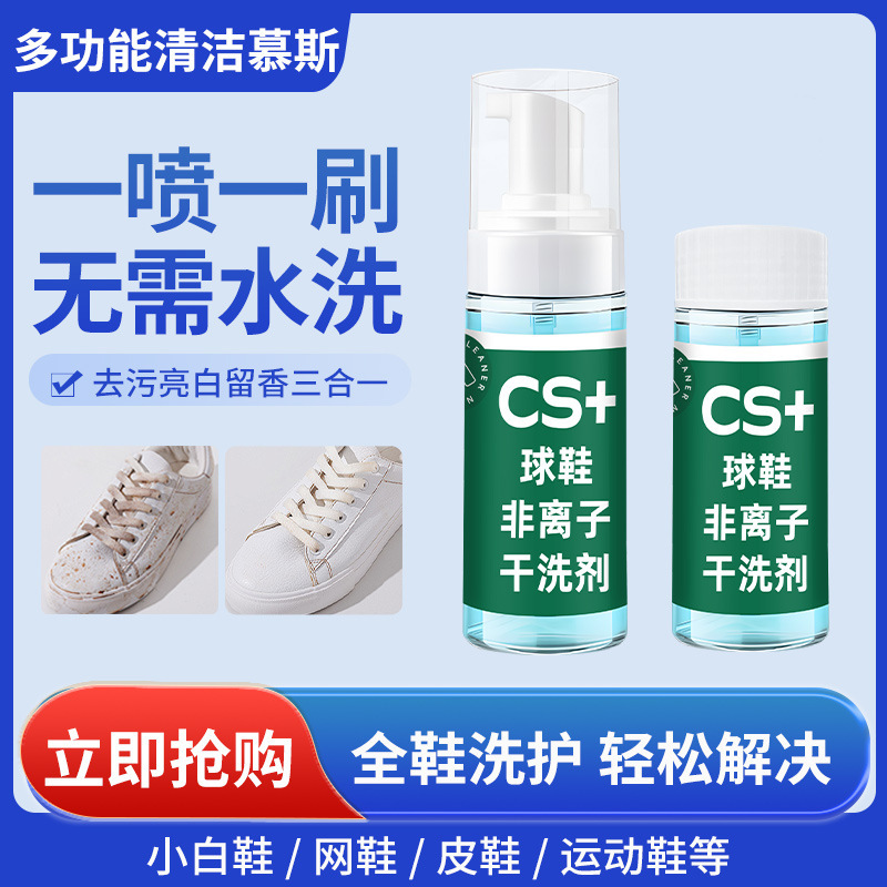 CS+スニーカー非イオン性ドライクリーニング剤セット、白い靴とスニーカーの洗浄とメンテナンス剤、スニーカーのドライクリーニングと洗濯用ブラシ