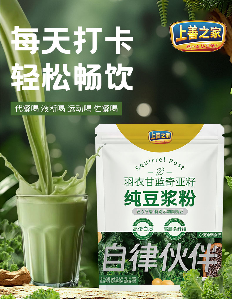 泰城羽衣甘蓝奇亚籽纯豆浆粉140克批发代发青汁代餐粉健身饱腹