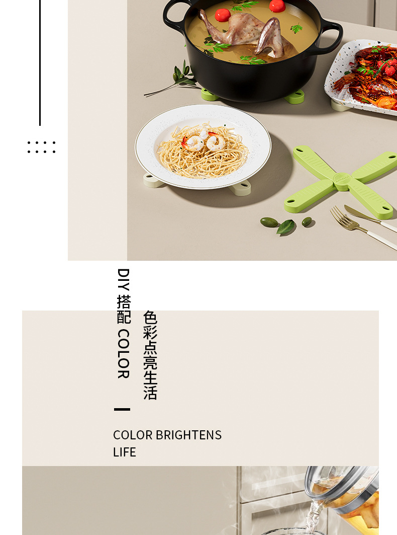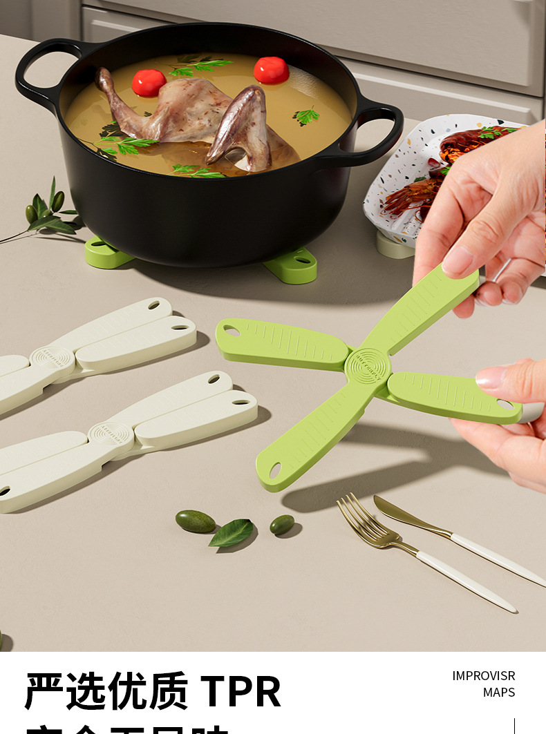 新しい折りたたみ式で吊り下げ可能な断熱マット、シリコン製の火傷防止、滑り止め、高温耐性の家庭用キッチンコースター、キャセロールボウルマット