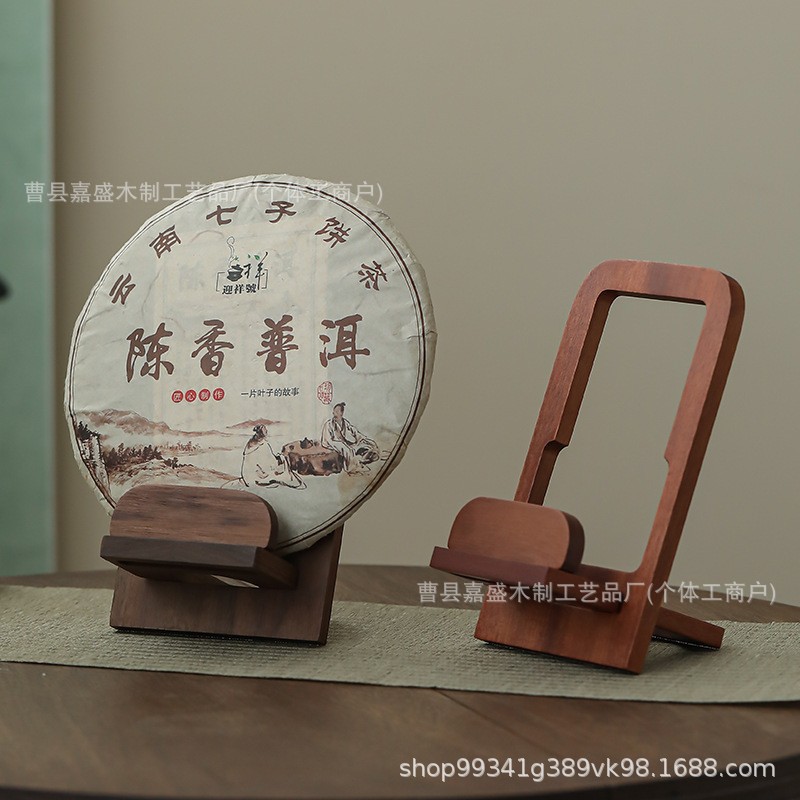 木製茶ケーキスタンド茶道アクセサリープーアル茶ケーキホルダーディスプレイスタンドビニールレコードホルダーホーム磁器プレートホルダー
