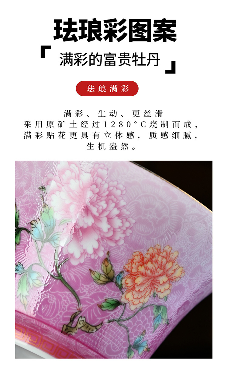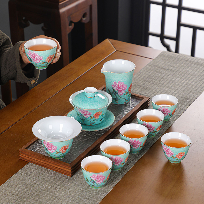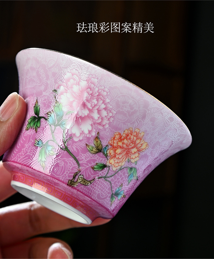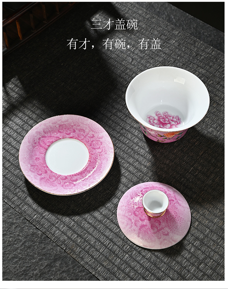 景徳鎮の陶磁器の茶器のエナメルの色の茶器の家庭用のグラデーションの花の工夫の茶器の軽い贅沢なビジネスの贈り物のセット