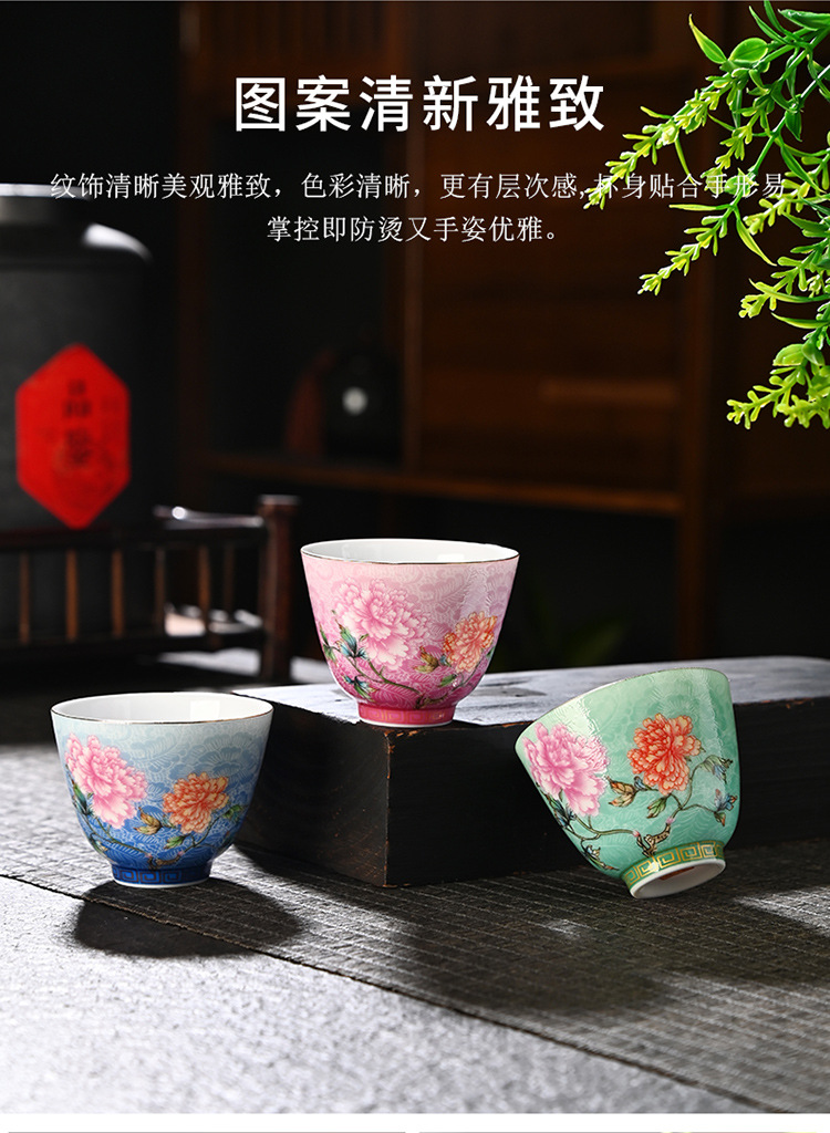 景徳鎮のエナメルの色彩は碗の宮廷の風をかぶせて花をかき集めてお茶の碗の高白の陶磁器の手で糸のお茶を絞めて卸売りを用意します。