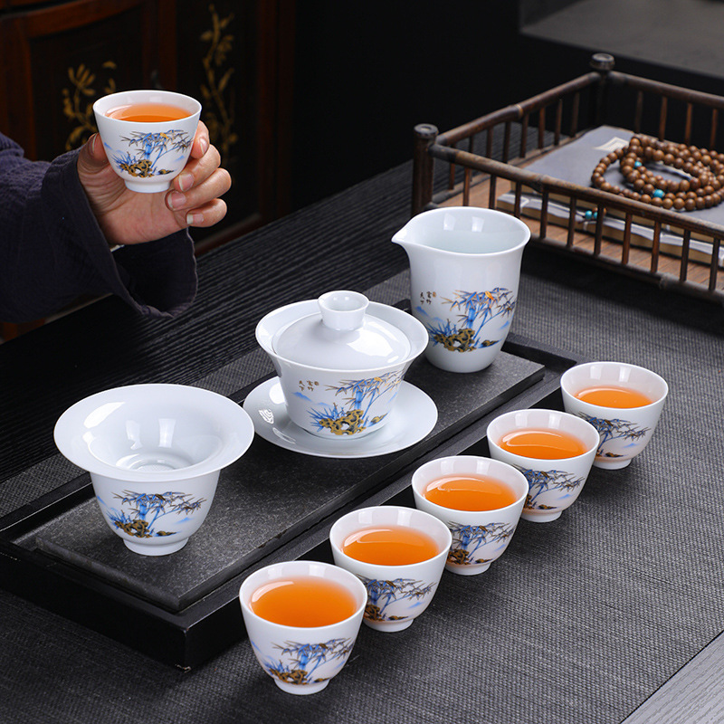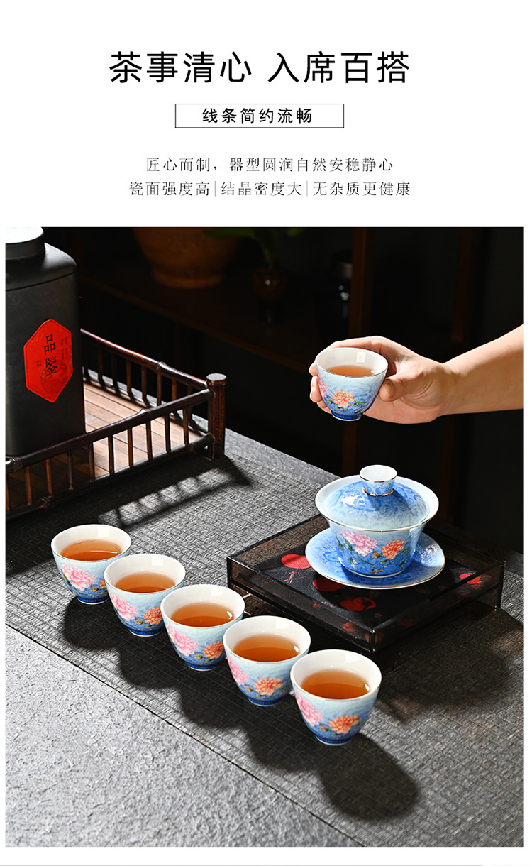 景徳鎮陶磁器工夫茶器描金蓋碗高級ビジネスプレゼント茶器セット現代シンプルお土産