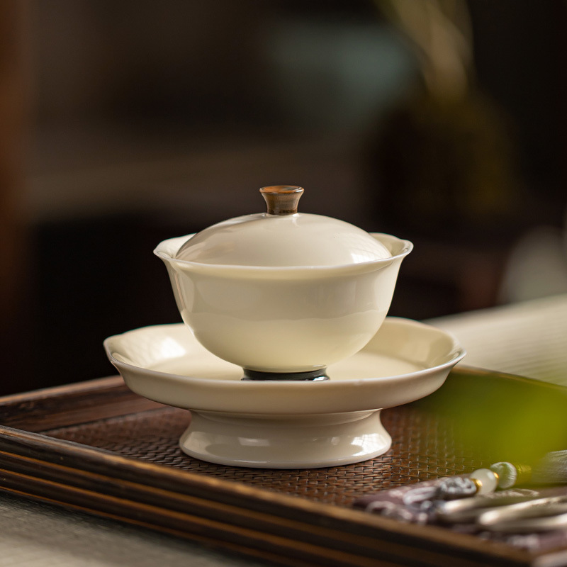 徳化羊脂玉磁器の蓋碗三才は簡単です。