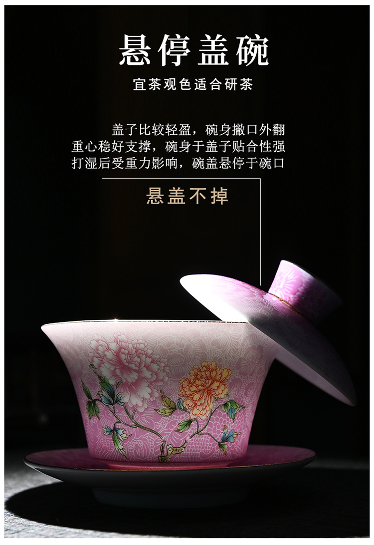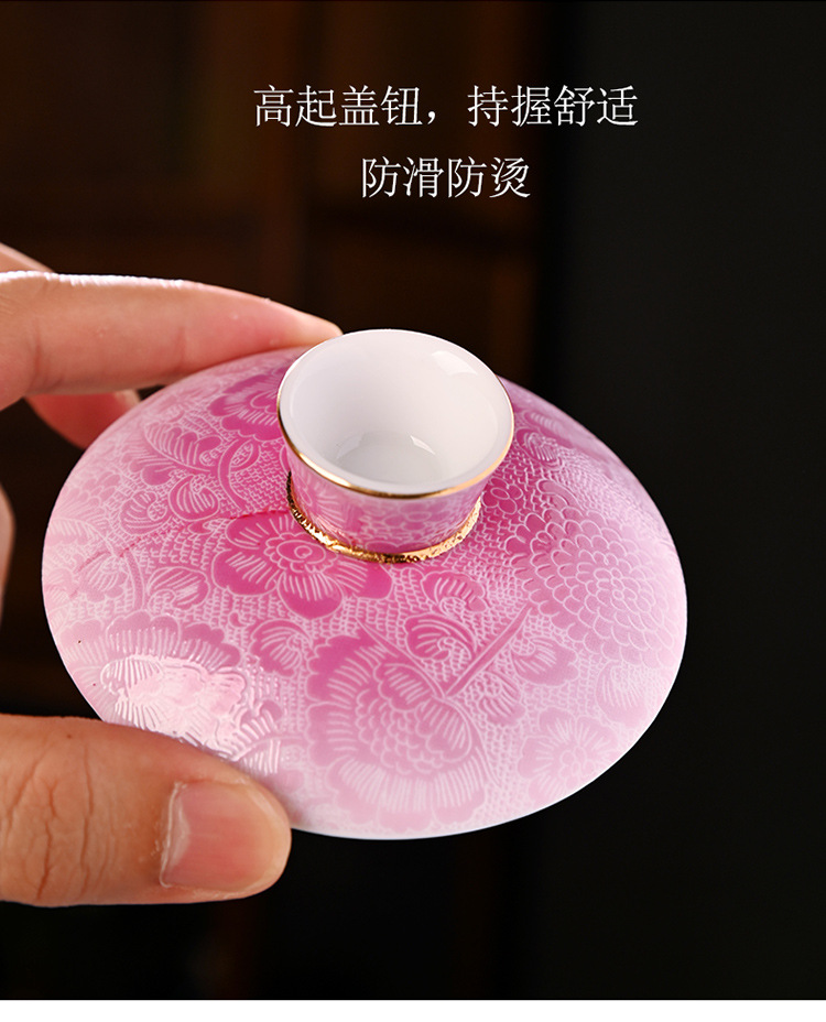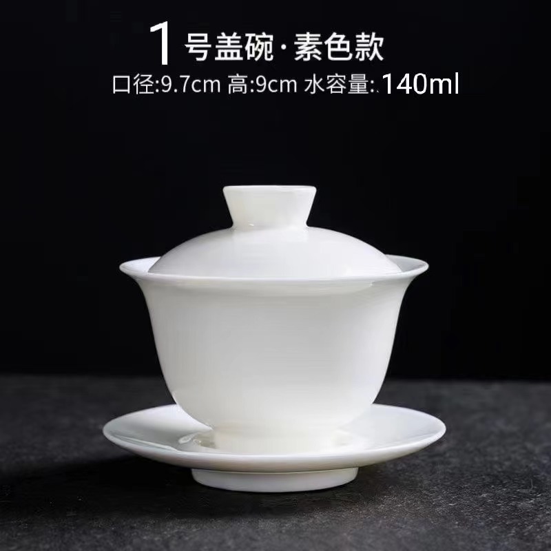徳化羊脂玉白磁三才蓋碗単セット純白描金高級家庭用リビングオフィスの小さいサイズはお茶を入れます。
