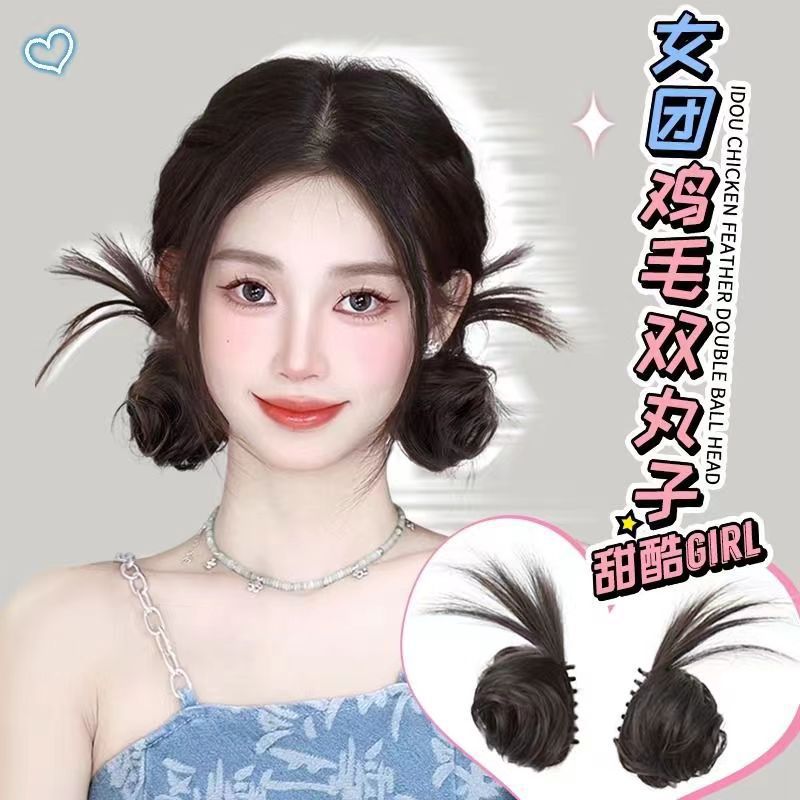鶏の毛のつかみの双の団子の髪の毛は一体式のギャルのはねの頭を包んで鶏の毛の髪を挟みます。
