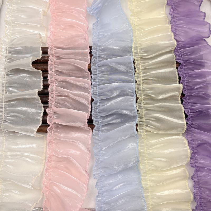 5cm宽!新款珠光窗帘褶皱花边法式木耳荷叶边蕾丝边侧边装饰条辅料